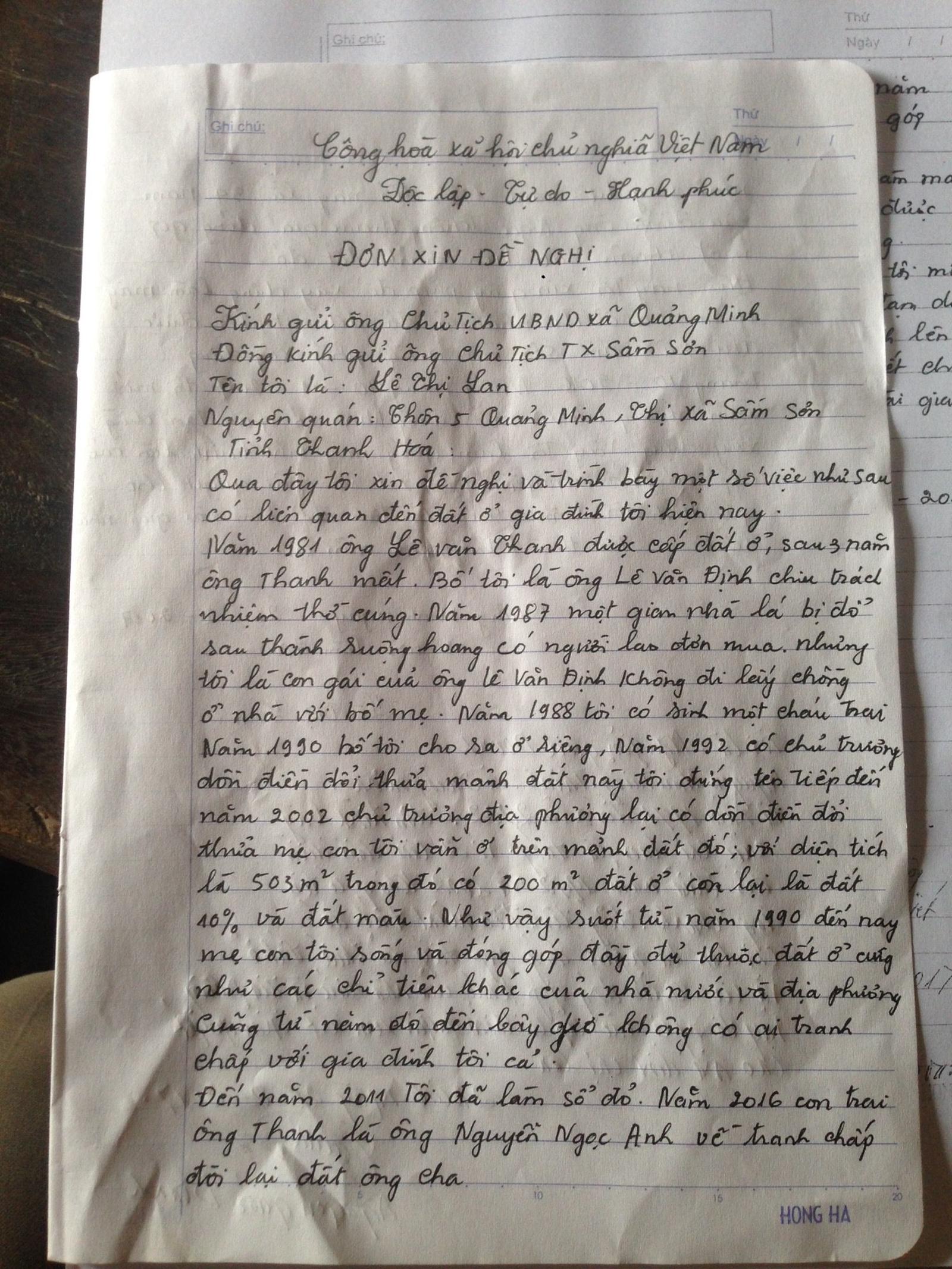 Đơn thư của bà Lan gửi các các quan chức năng. Ảnh: P.V