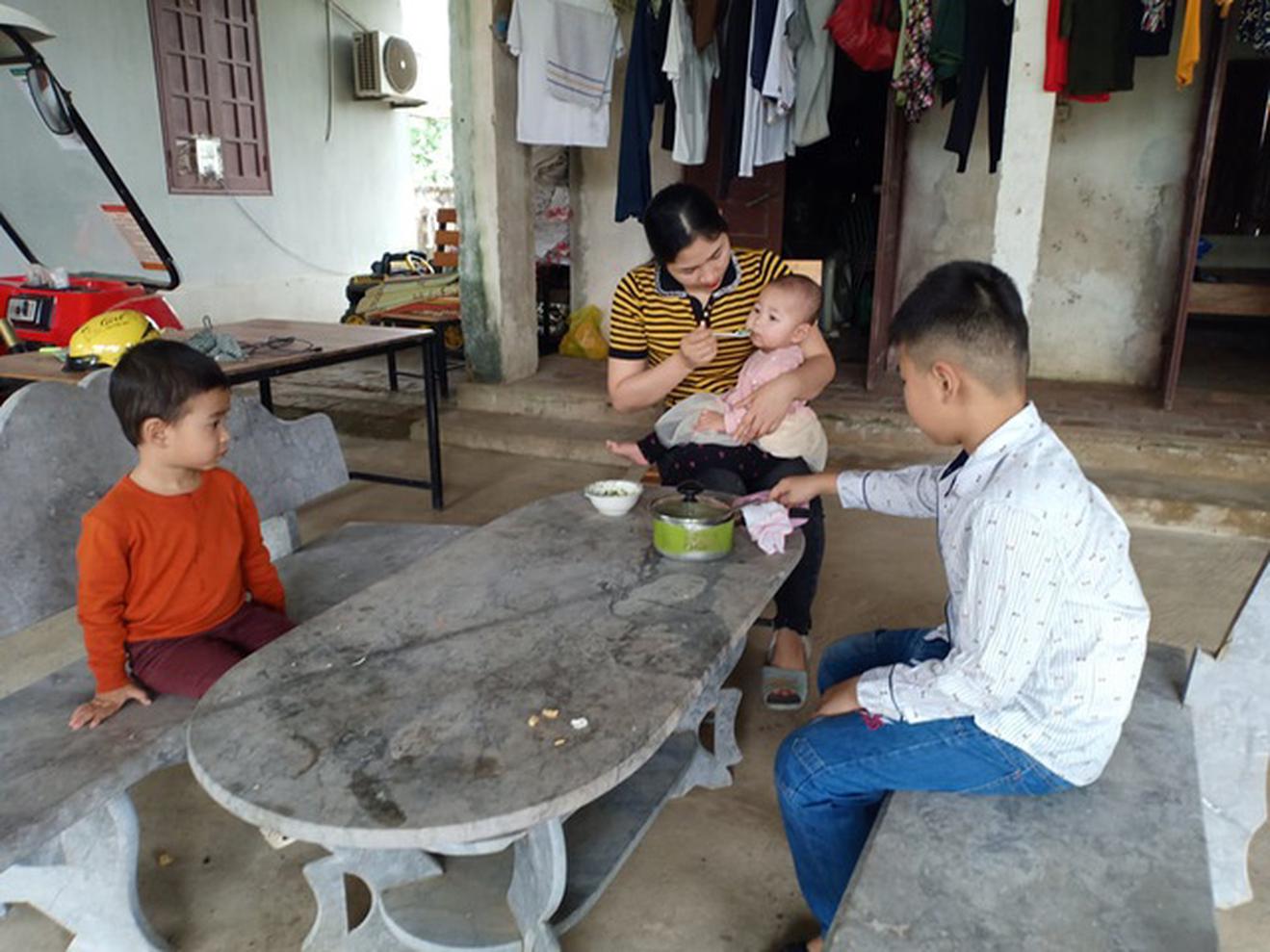 Vợ Cao Văn Bắc một mình nuôi 3 con nhỏ, kể từ ngày Bắc bị bắt tạm giam. Ảnh: P.V
