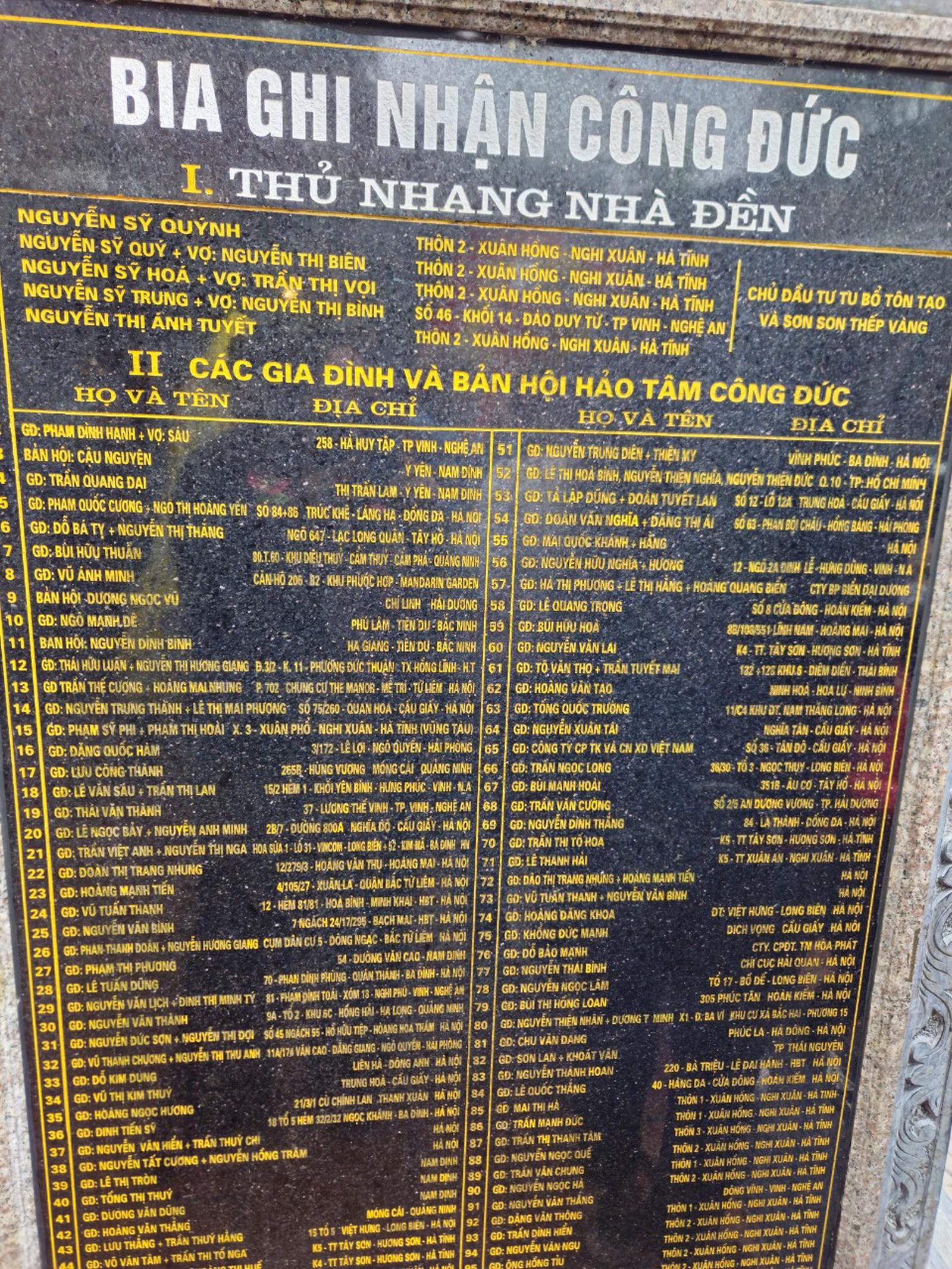 Chia sẻ với chúng tôi, ông Nguyễn Sỹ Quý, thủ nhang xúc động: “Tấm bia giữa đền này là sự ghi nhận công tu bổ, sửa chữa của các gia đình thủ nhang cùng nhân dân địa phương thập phương khi đền bị xuống cấp nghiêm trọng vào năm 2015. Sự gắn bó của các gia đình với ngôi đền không chỉ ở một tấm bia. Đến đời chú nữa là 8 đời. Cứ thủ nhang đời này qua đời khác chăm lo nội tự, hương khói hàng ngày”.