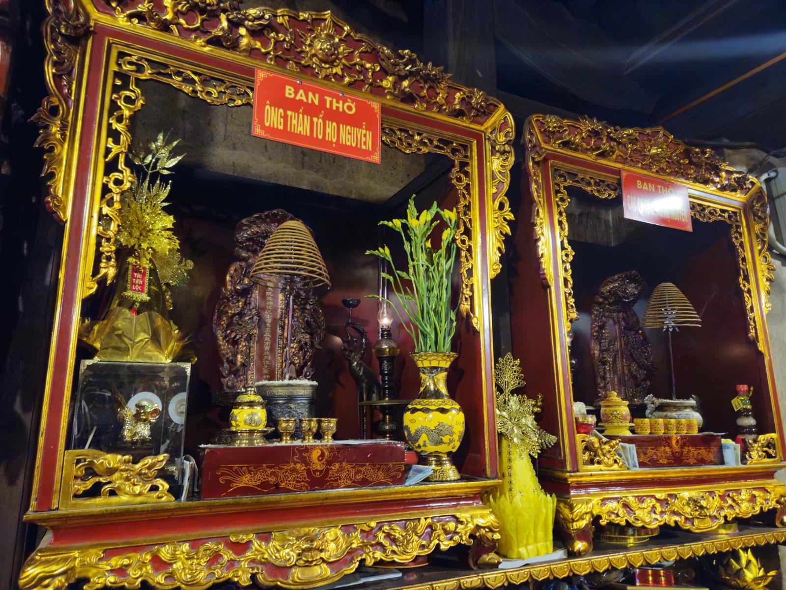 Ban thờ của dòng họ Nguyễn 8 đời nay được đặt trong nội tự của đền Chợ Củi. Ảnh: PV