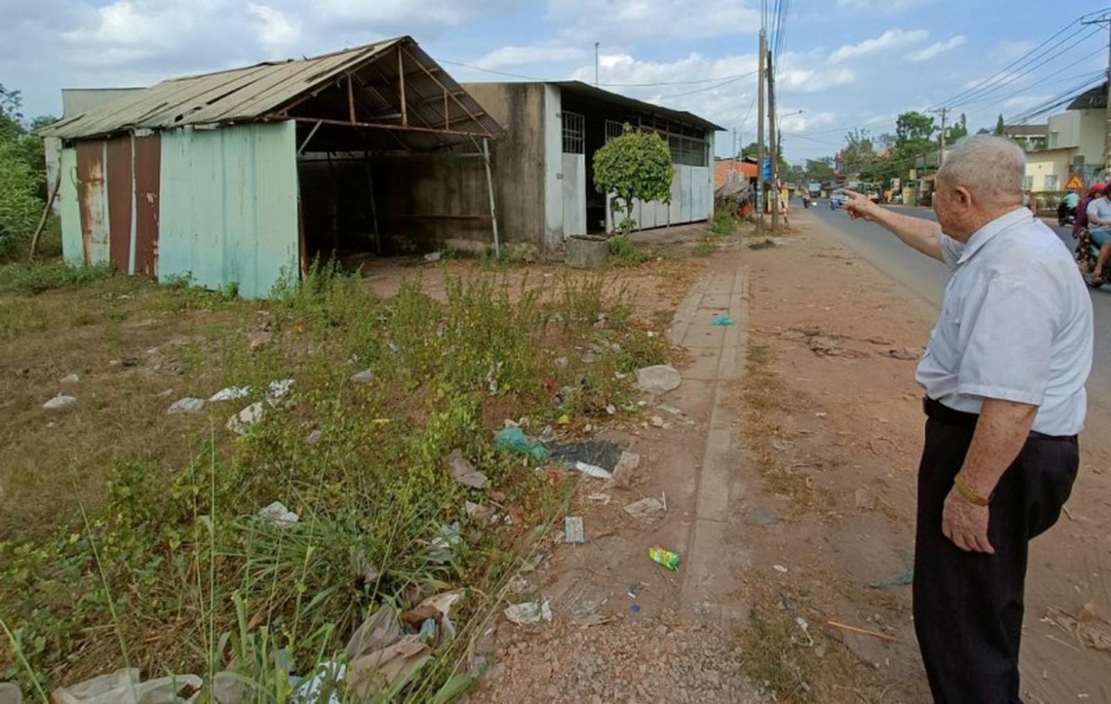 Ông Đoàn Văn Sỹ đứng bên lô đất tranh chấp đã được tòa án xử thắng 2 lần nhưng chưa được THA. Ảnh: Nguyên Dũng