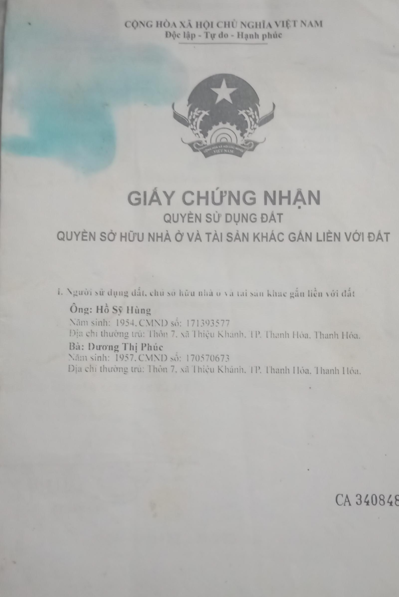Theo tìm hiểu được biết, gia đình ông Hồ Sỹ Hùng, thôn 7, xã Thiệu Khánh có giấy chứng nhận quyền sử dụng đất (GCNQSDĐ) do UBND TP Thanh Hóa cấp ngày 6/10/2015, số hiệu CA 340848, diện tích 358,3m2. Ngày 11/3/2021, UBND TP Thanh Hóa cấp giấy phép xây dựng cho hộ ông Hồ Sỹ Hùng; diện tích xây dựng 95m2, sàn tầng 1, 2: 95m2, tổng diện tích xây dựng 190m2, chiều cao công trình 10,2m, 2 tầng và 1 mái. Tuy nhiên, từ tháng 3/2021 đến nay, hộ ông Hồ Sỹ Hùng vẫn chưa thể xây dựng nhà theo giấy phép xây dựng đã được cấp vì gặp phải sự cản trở của bố con ông Khoa.