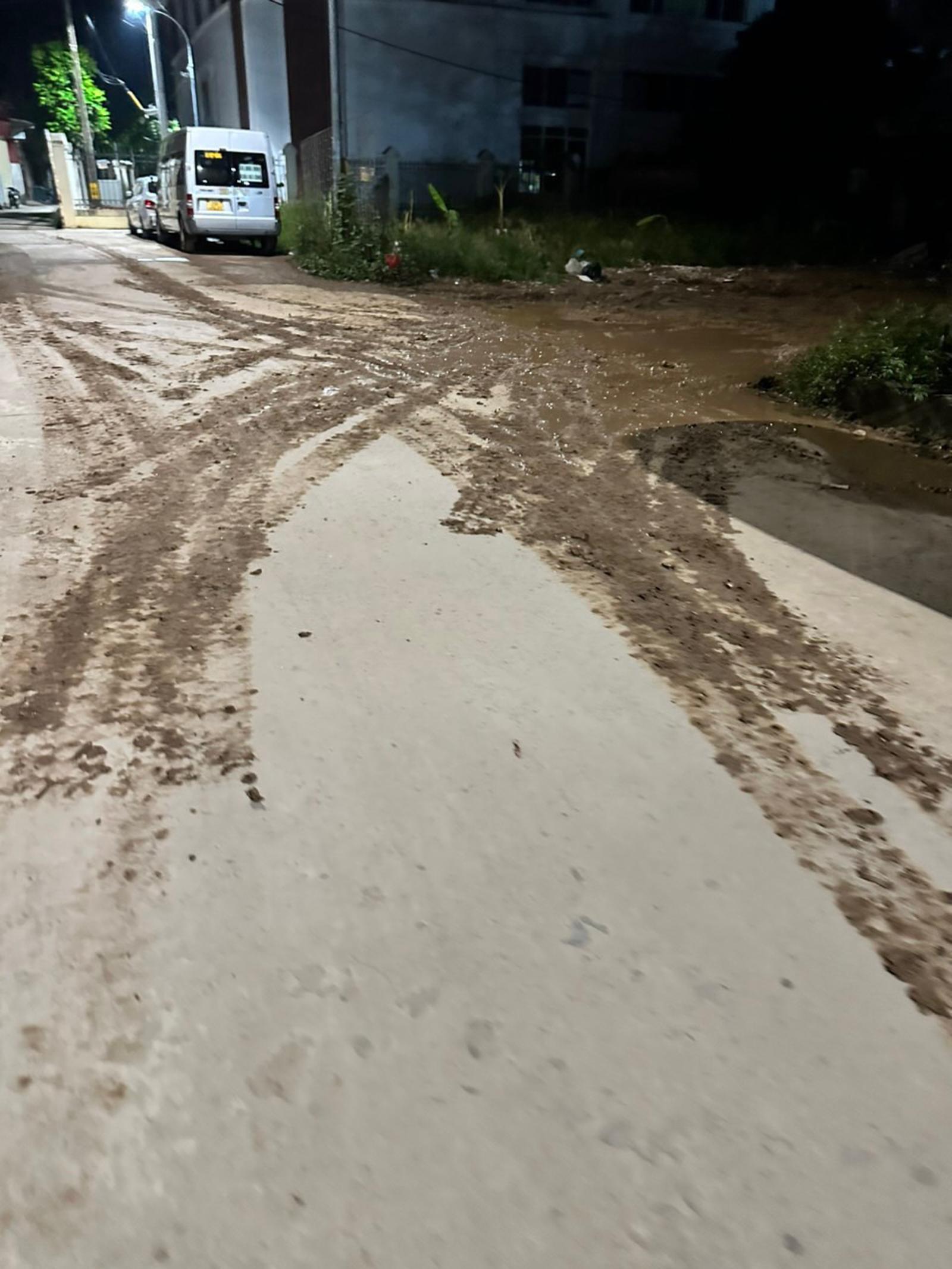 Đường xá bị xe chở đất hàng ngày đi qua rơi vãi, mất vệ sinh