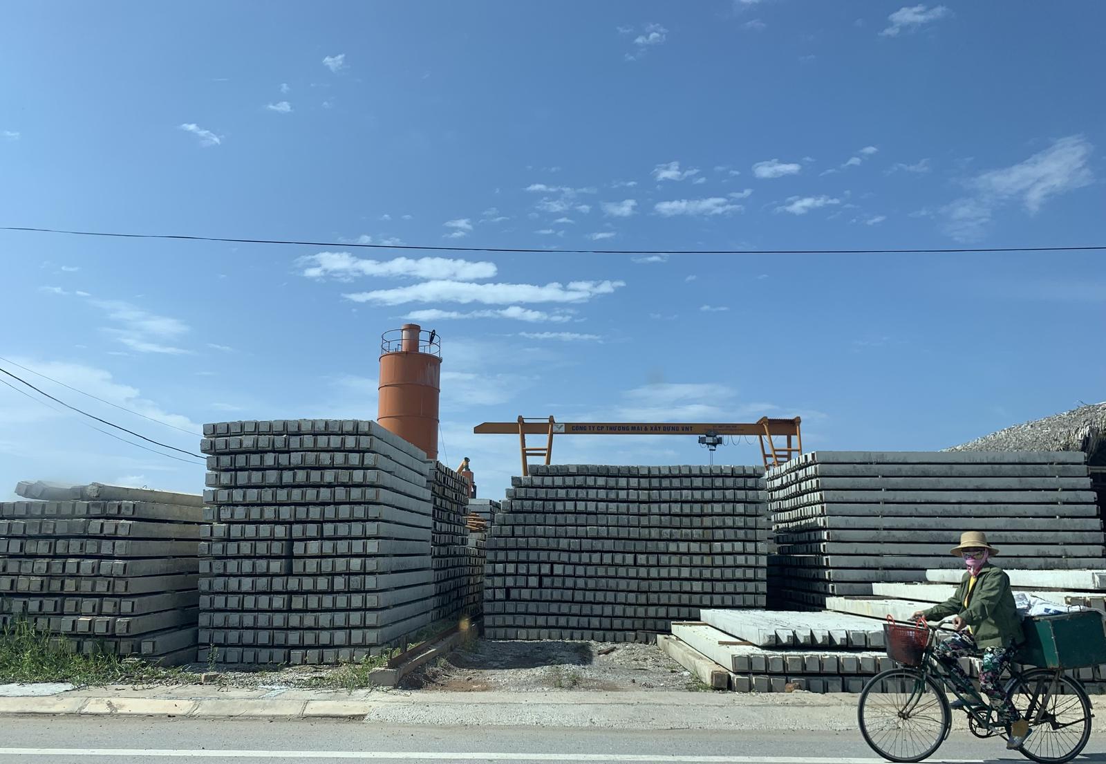 Xưởng sản xuất cọc bê tông trái phép trên đất ở của Cty VNT tại thôn Tiền Thịnh, đường Thanh Niên, xã Quảng Đức, huyện Quảng Xương, tỉnh Thanh Hoá. Ảnh: Hương Trà