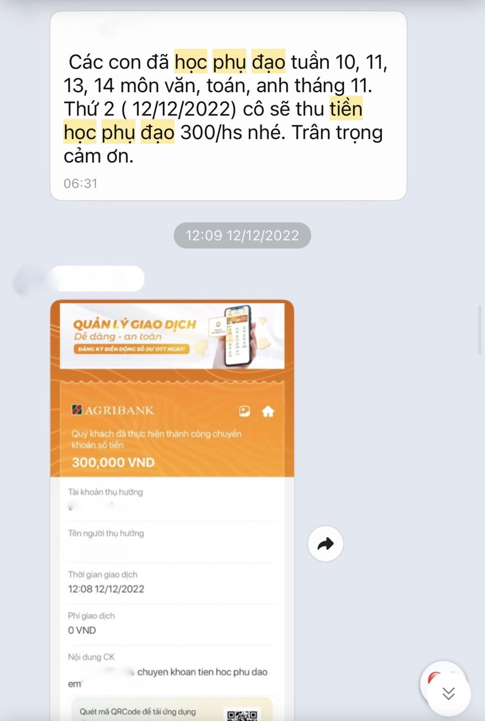 Trong năm học 2022 - 2023 do Covid-19, nên trường không tổ chức dạy thêm, học thêm. Năm học 2023 - 2024, trường có tổ chức dạy, thu 300.000 đồng cho 3 môn học trên cơ sở thống nhất với hội phụ huynh và thu được một tháng (tháng 9/2023 - PV).