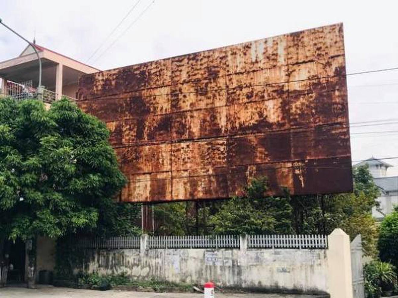 Tấm biển quảng cáo cao hàng chục mét đang trong tình trạng xuống cấp nghiêm trọng. Ảnh: TQ