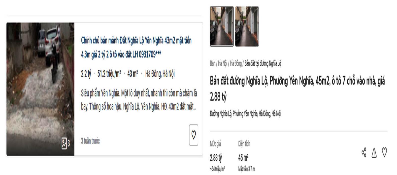 Bất động sản tại Nghĩa Lộ, Yên Nghĩa được rao bán thời điểm tháng 2 và tháng 5 năm 2022. Nguồn: internet