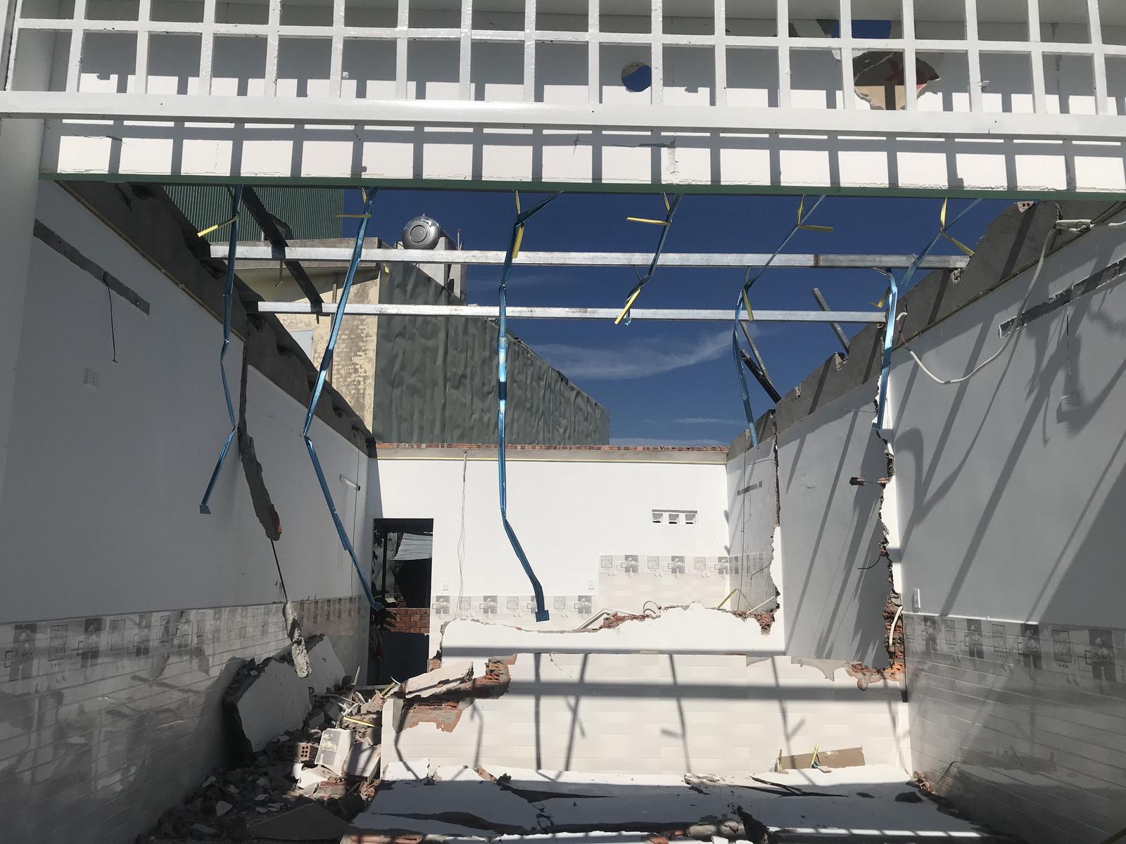 Phần tường ngăn bên trong nhà ông Hùng bị đập phá. Ảnh: N.P