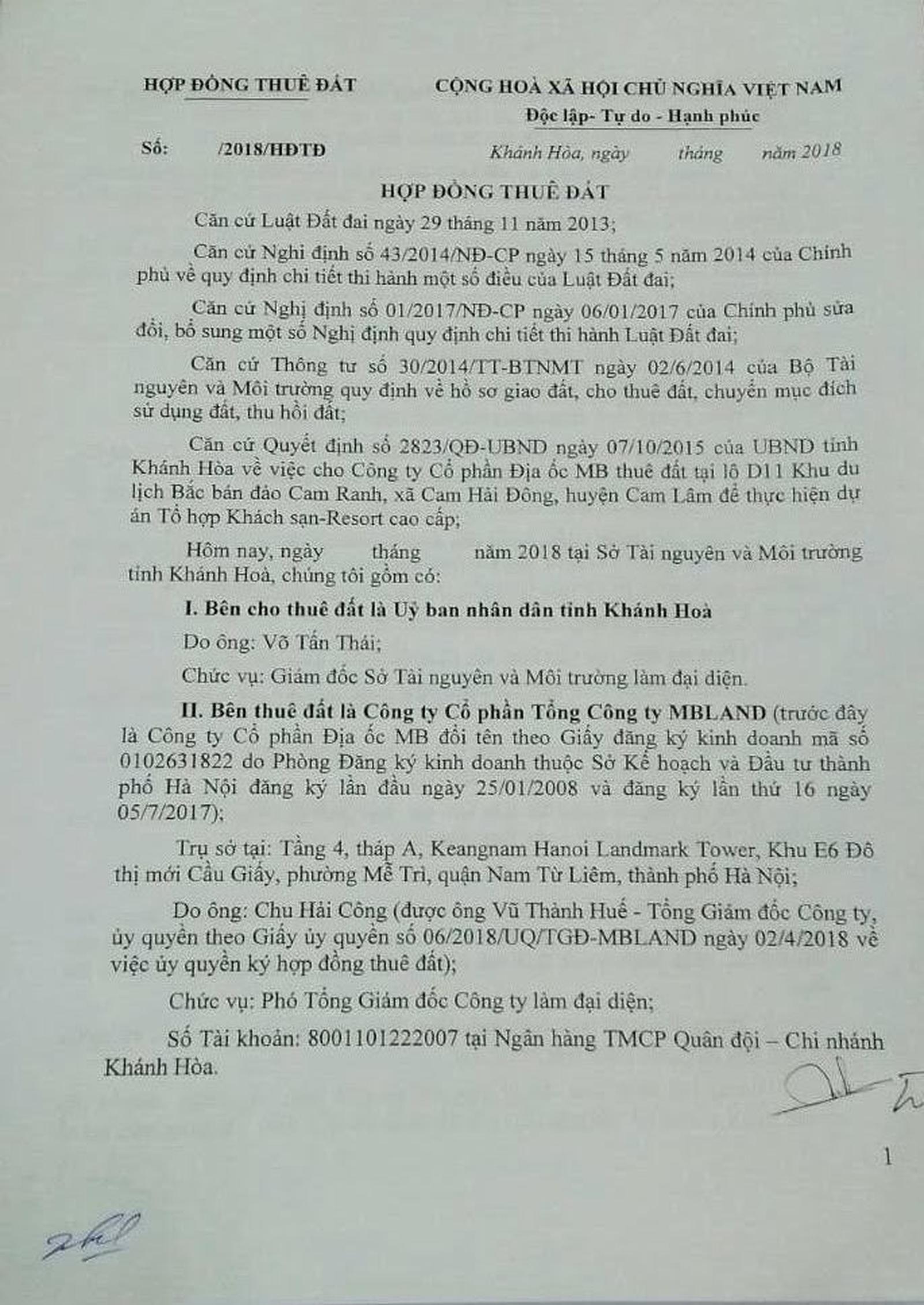 Báo Thanh tra điện tử đã có bài viết: “Tiền đã trao nhưng hợp đồng thuê đất vẫn chưa được ký!?” phản ánh lô đất D11 Khu du lịch Bắc bán đảo Cam Ranh được UBND tỉnh Khánh Hòa giao cho công ty Cổ phần Địa ốc MB (nay là Công ty Cổ phần Tồng Công ty MBLand) thuê để thực hiện dự án Tổ hợp Khách sạn - Resort cao cấp thể hiện qua Quyết định số 2823/QĐ-UBND ngày 7/10/2015 của UBND tỉnh Khánh Hòa.