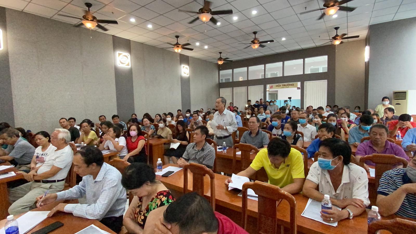 Ban đại diện cùng hơn 120 cư dân sống tại chung cư Sơn Thịnh 2 đã tổ chức buổi họp để bàn về việc ai sẽ tiếp quản để quản lý tòa nhà chung cư Sơn Thịnh 2. Ảnh: NH