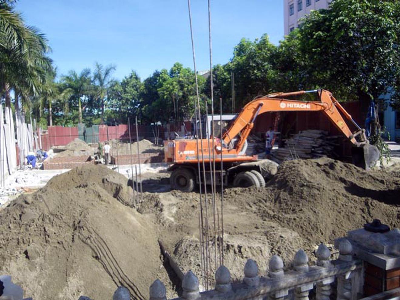 Sau khi đoàn kiểm tra có kết luận về sai phạm, ngày 27/6 Tổng Cty Hợp Lực vẫn ngang nhiên thi công. Ảnh: TL
