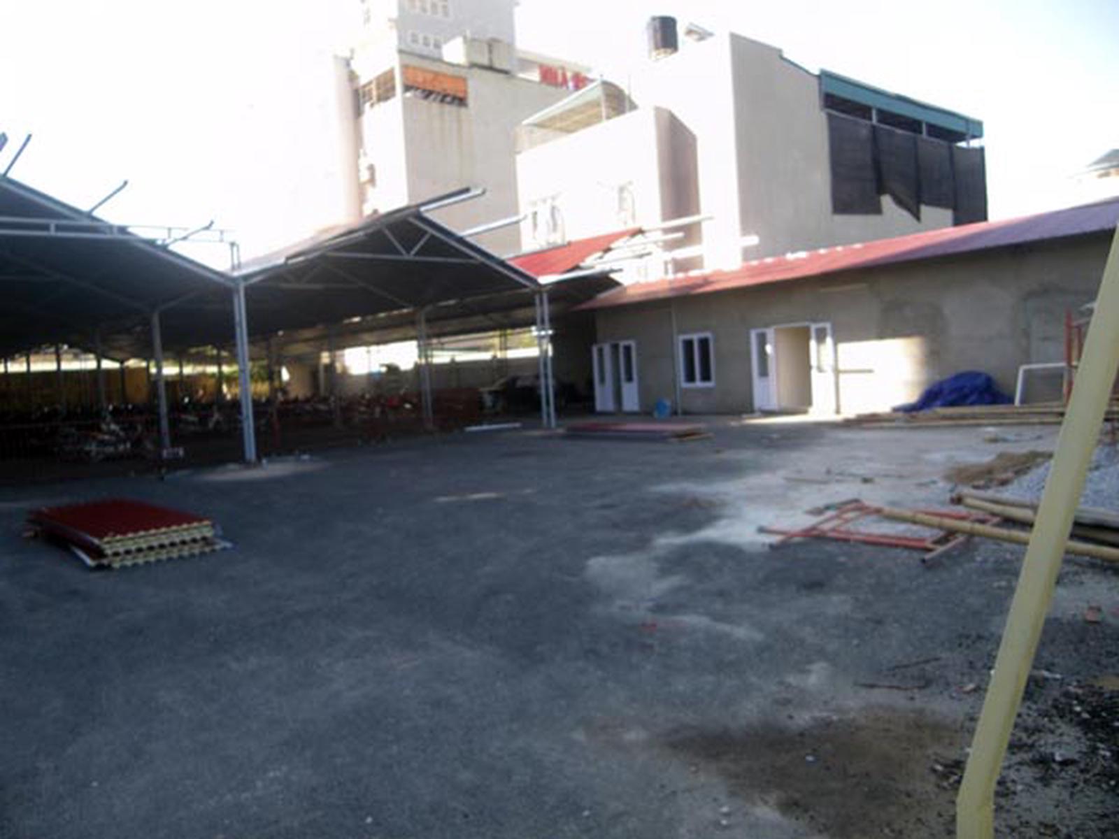 Bãi để xe tạm trở thành nhà xe và được bao tường kiên cố. Ảnh: TL