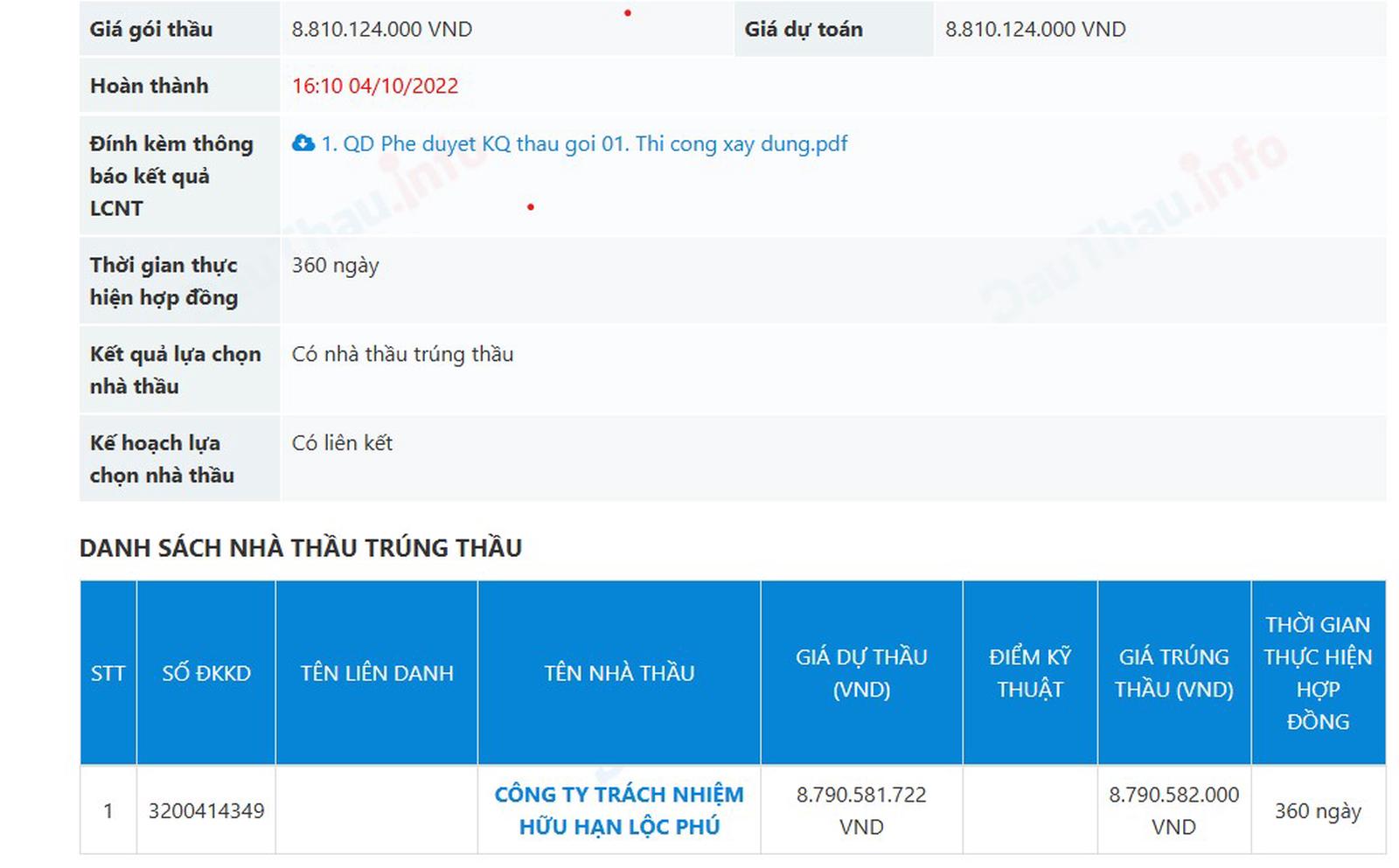 Trong hồ sơ dự thầu, Công ty TNHH Lộc Phú đã cung cấp HĐTT là công trình Trường Mầm non tư thục Ban Mai (địa điểm xây dựng: Số 86, đường 26.3, phường Văn Yên, TP Hà Tĩnh, tỉnh Hà Tĩnh) với vai trò là nhà thầu độc lập, giá trị gói thầu là hơn 9,1 tỷ đồng. Tuy nhiên, qua xác minh của phóng viên, không hề có công trình Trường Mầm non tư thục Ban Mai tại địa chỉ trên được triển khai xây dựng.