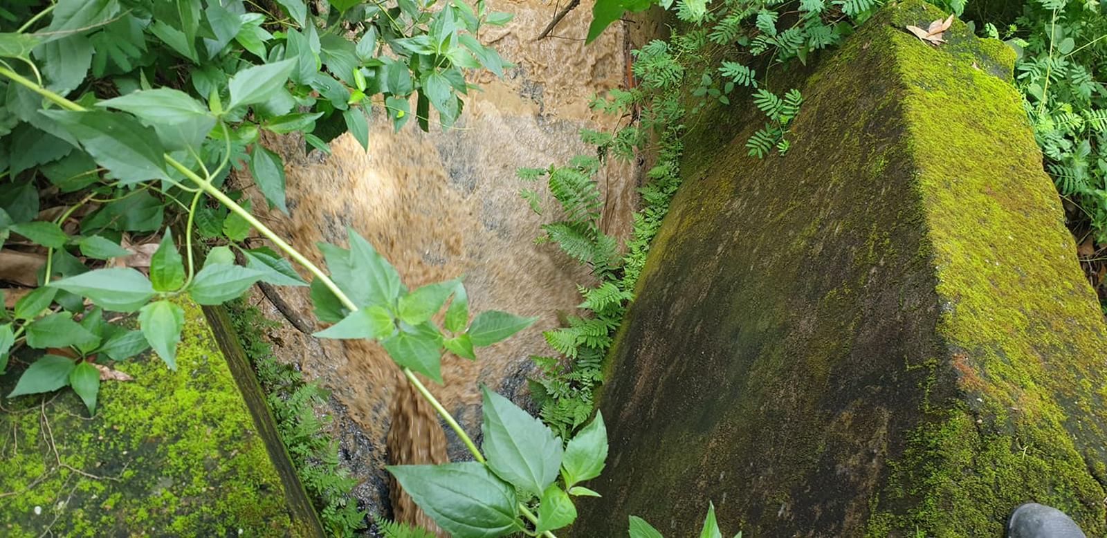 Nước thải màu nâu đỏ của Công ty Cổ phần Nước sạch Bắc Giang xả ra môi trường. Ảnh: Hoàng Long