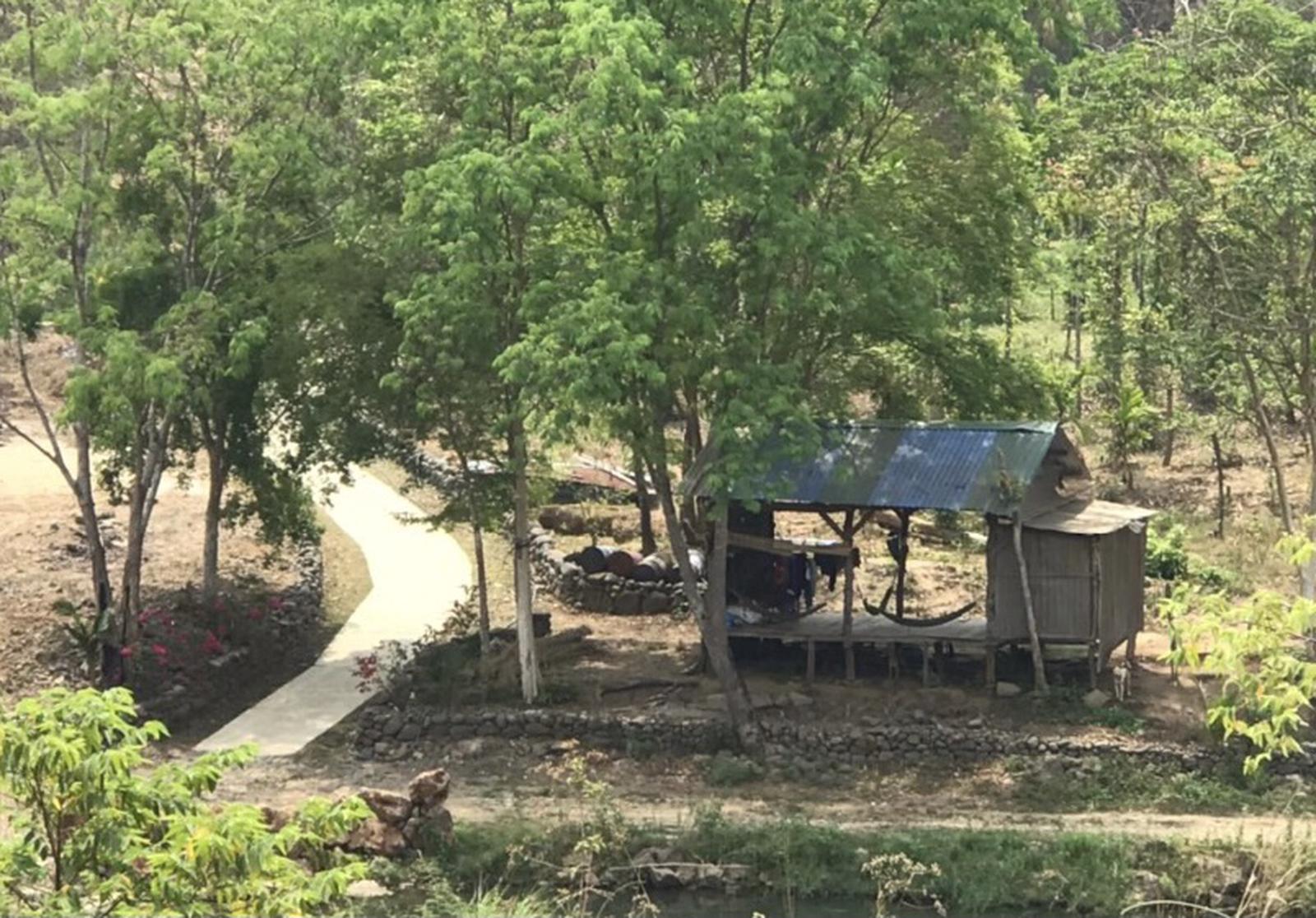 Ông Dũng còn cho lót các miếng bê tông để làm đường đi nội bộ từ mép sông Sêrêpốk lên nhà với chiều dài 150m.