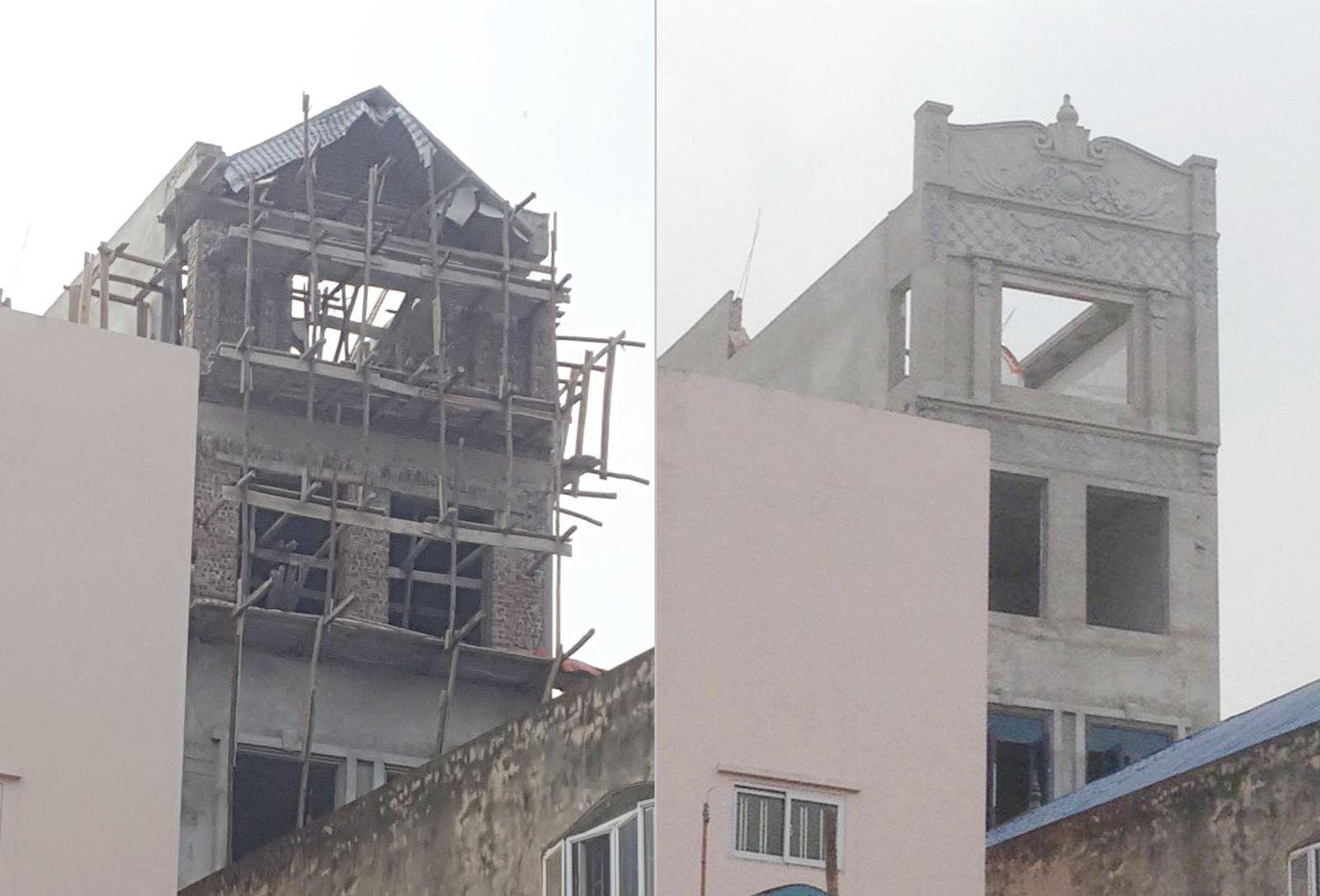 Mặt trước phần xây dựng sai phép của công trình gia đình ông Trần Phương Hiếu tại 69 Phố Vồi, thị trấn Thường Tín chụp ngày 5/11/2018 (trái ảnh) và chụp ngày 13/1/2019 (phải ảnh). Ảnh: LP