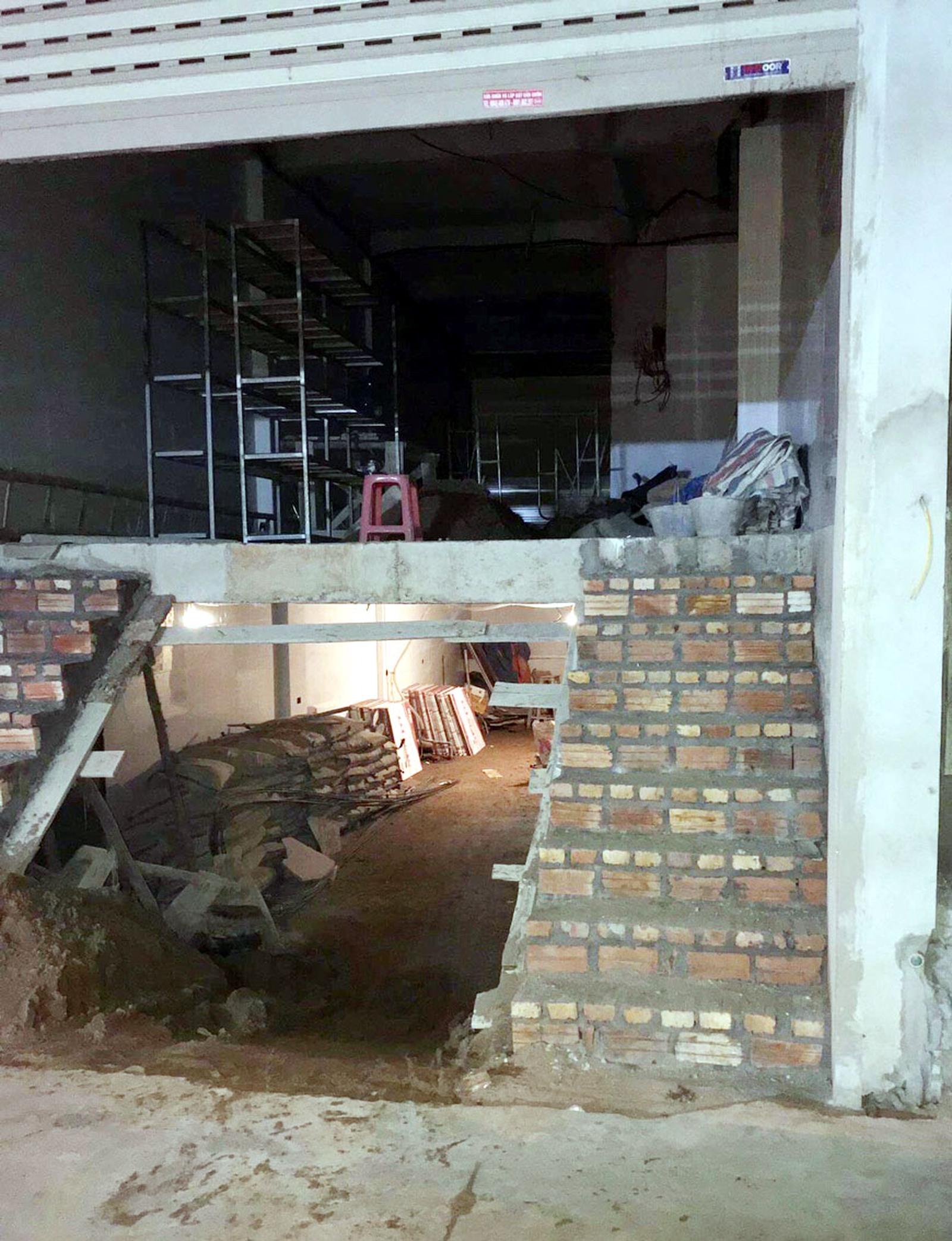 Tầng hầm của công trình số 69 phố Vồi, thị trấn Thường Tín không có trong giấy phép xây dựng được cấp. Ảnh: LP