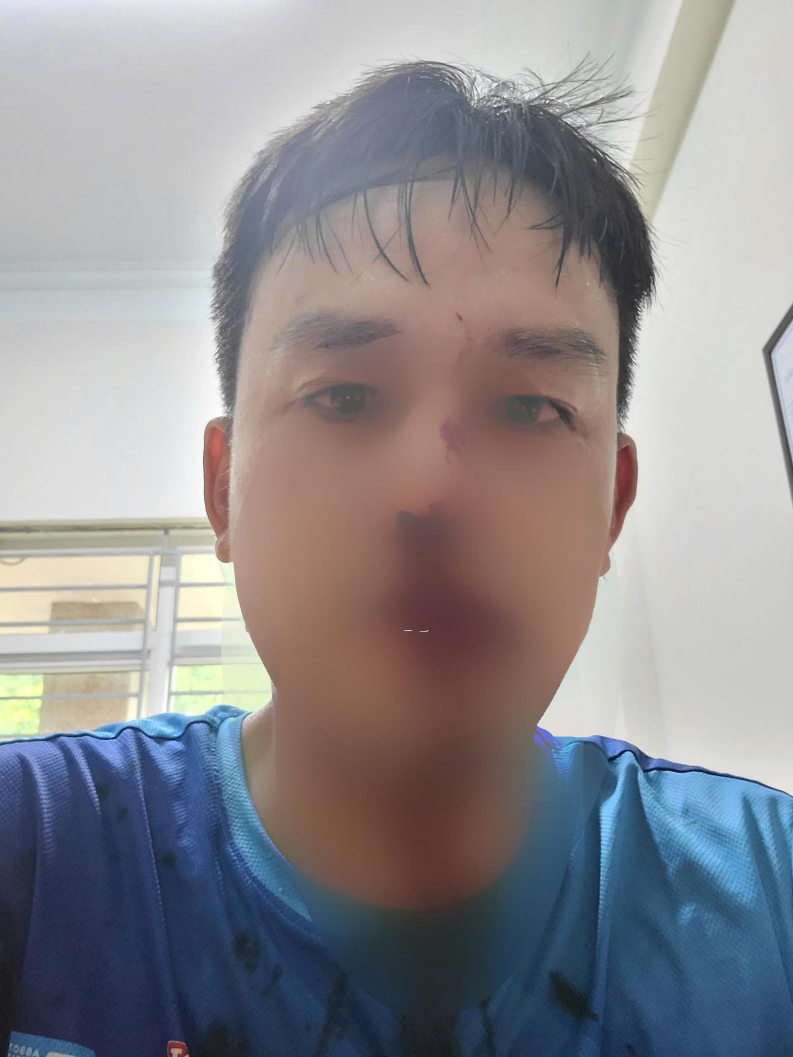 Anh Thanh bị đánh gãy xương sống mũi, chảy nhiều máu. Ảnh: Người dân cung cấp