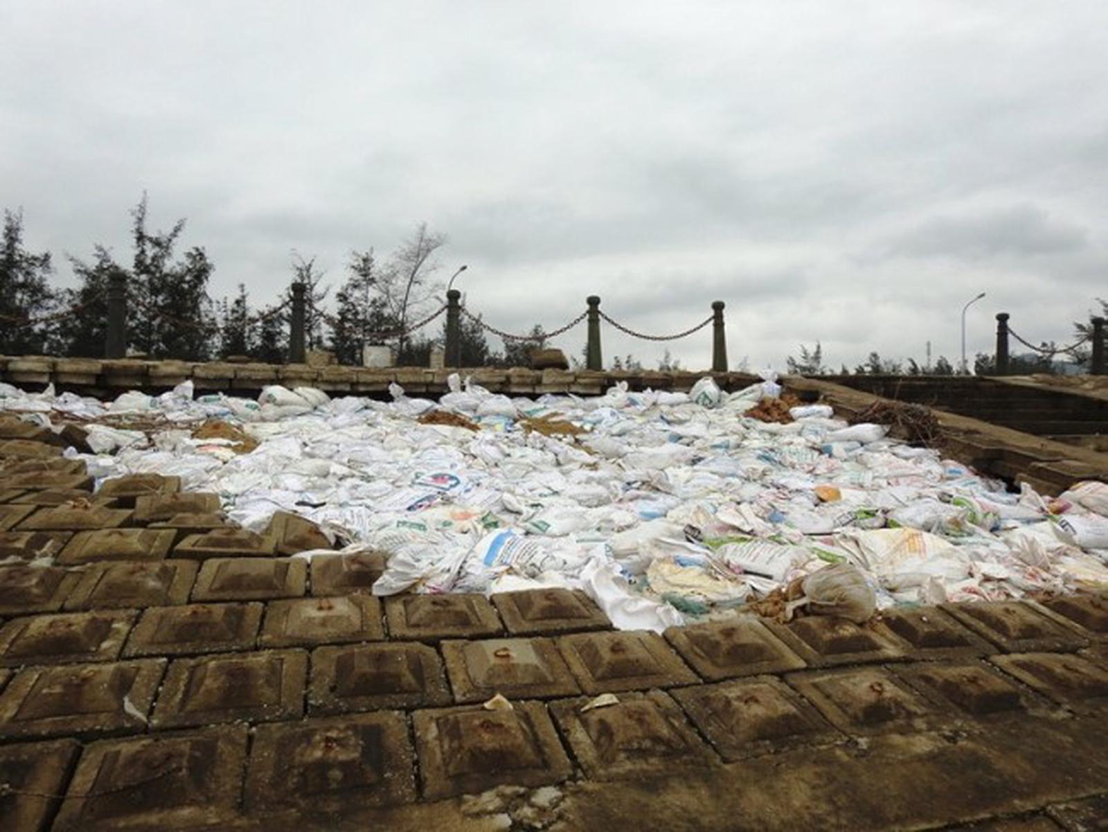 Dưới đây là những hình ảnh mà PV ghi lại được từ bờ đê hàng chục tỷ đồng bị hư hỏng nghiêm trọng sau cơn bão số 10: