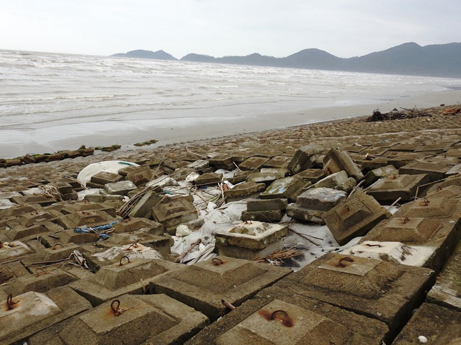 Tuyến đê biển huyện Lộc Hà được đầu tư gần 100 tỷ đồng dễ dàng bị hạ gục bởi một trận bão. Ảnh: HY