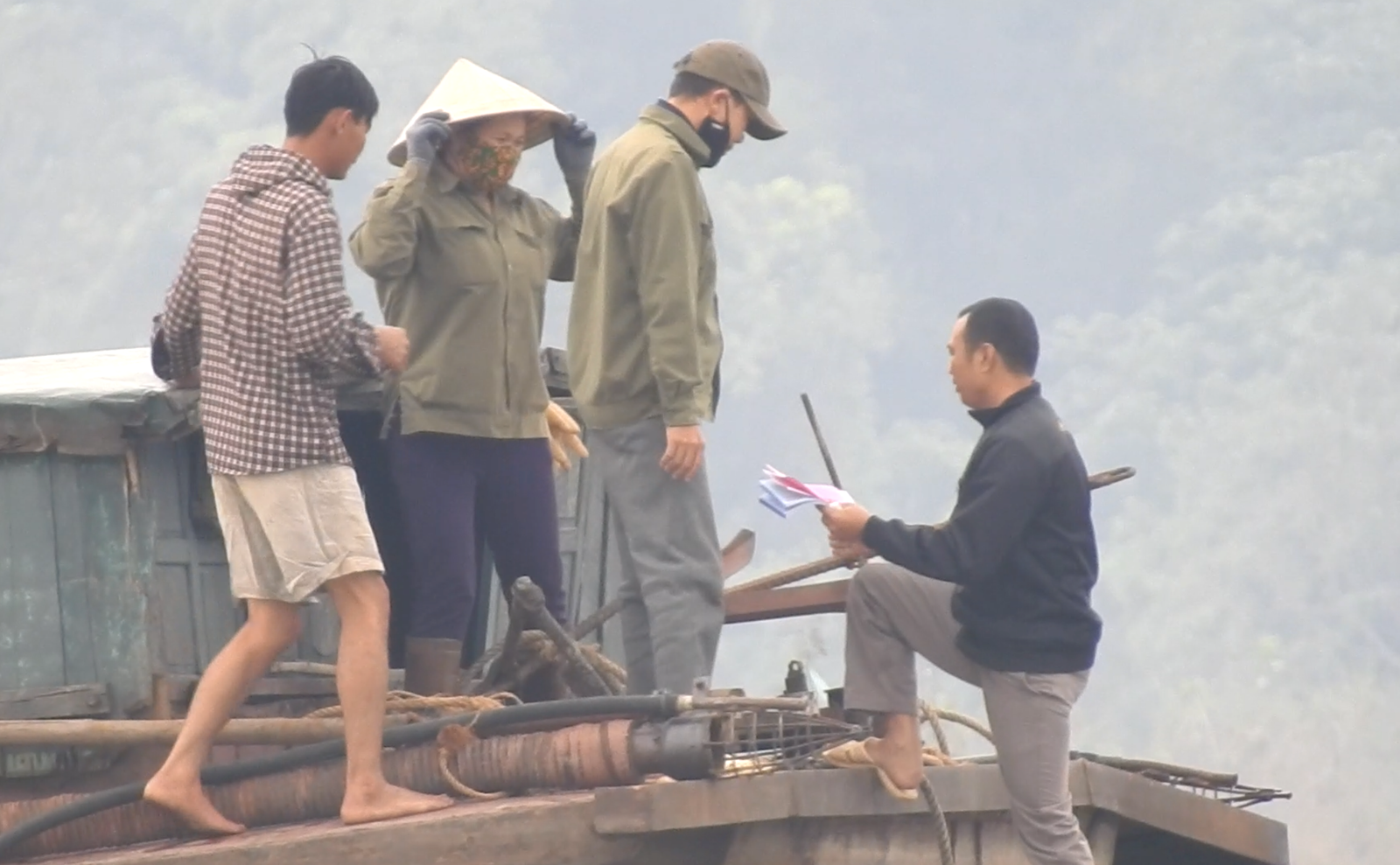 Nhân viên của Công ty Á Châu tiếp cận chủ tàu để bán hóa đơn. Ảnh: NPV