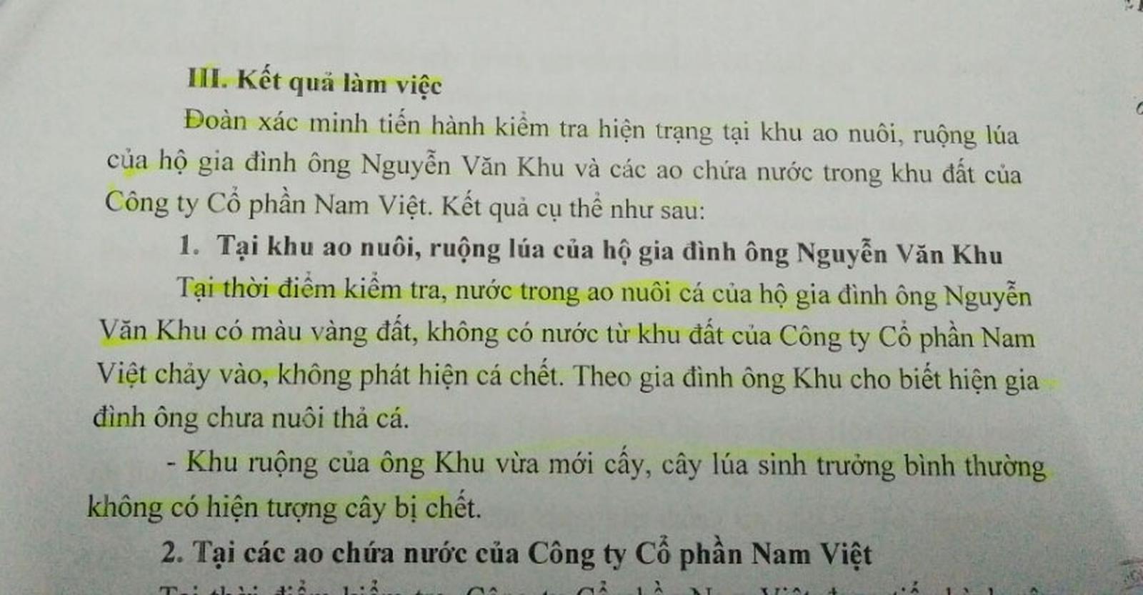 Theo biên bản làm việc ngày 1/8/2016 tại trụ sở UBND xã Phượng Tiến, kết quả ngược lại với những gì mà đơn thư tố Cty Nam Việt trước đó.