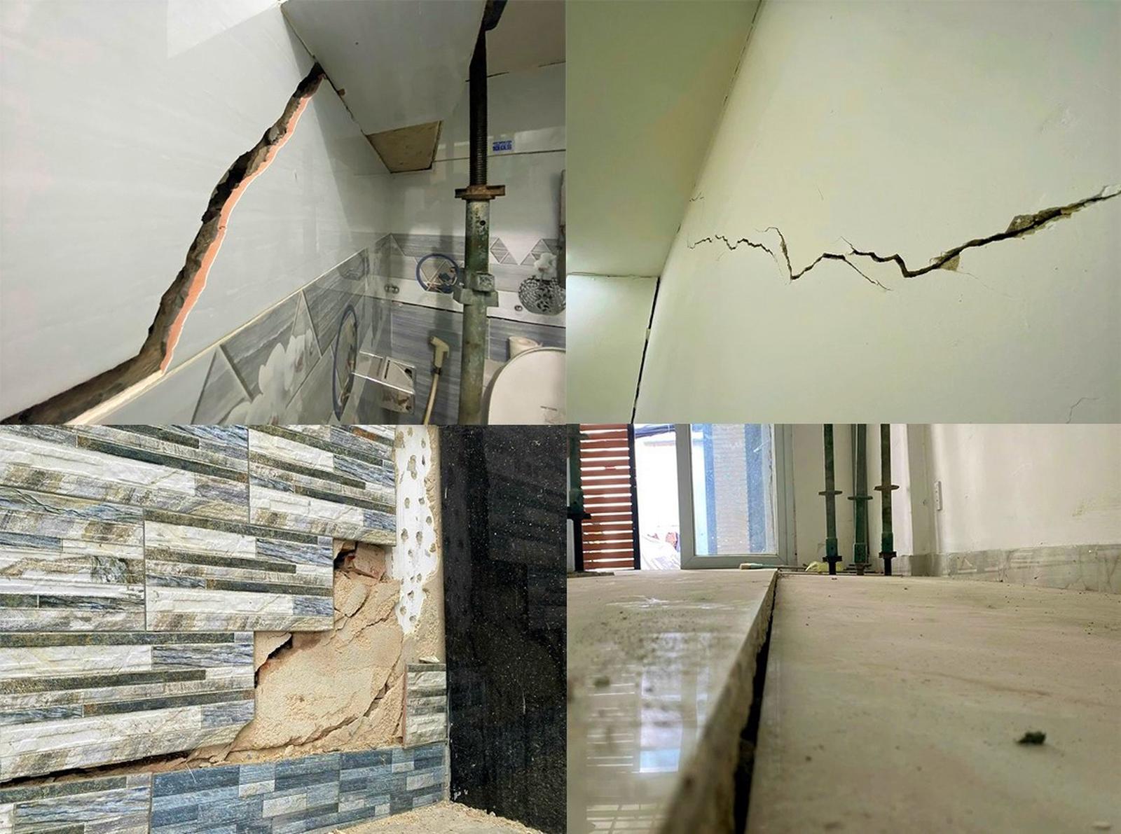 Cụ thể, công trình này trong quá trình thi công xây dựng mới gây các hư hỏng, lún, nứt tách gạch nền tại tầng trệt, cửa đi bị xệ, các đoạn tường bên trái, phía sau và nhà vệ sinh bị nứt; tại lầu 1 bị nút đoạn dầm cầu thang và các mảng tường bên trái…