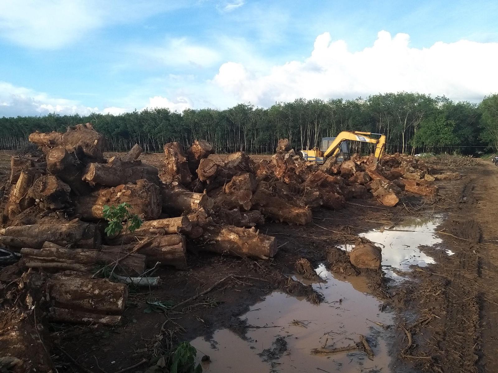 Việc khai thác, móc lấy gốc cây cao su diễn ra công khai