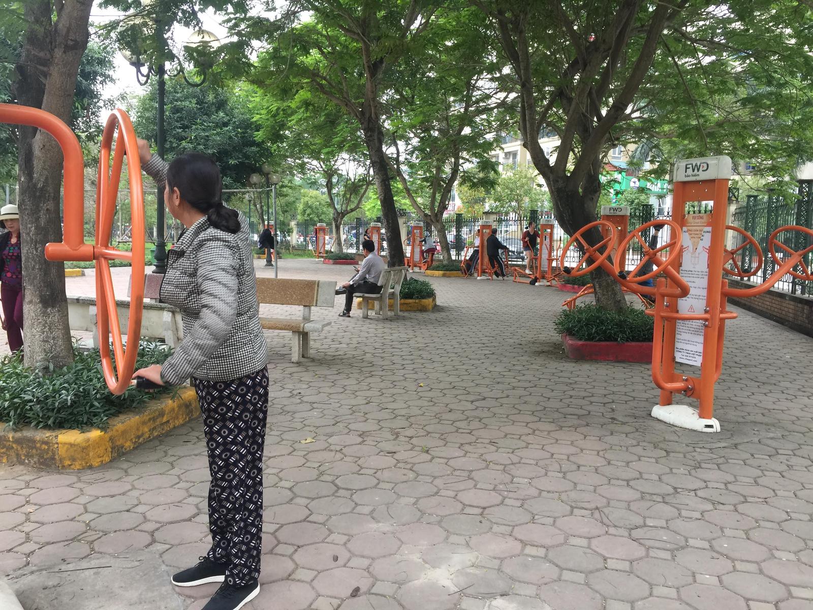 Hàng trăm người dân sinh sống xung quanh công viên Cầu Giấy phản đối việc "băm nát" công viên làm bãi xe, dịch vụ thương mại. Ảnh: QĐ