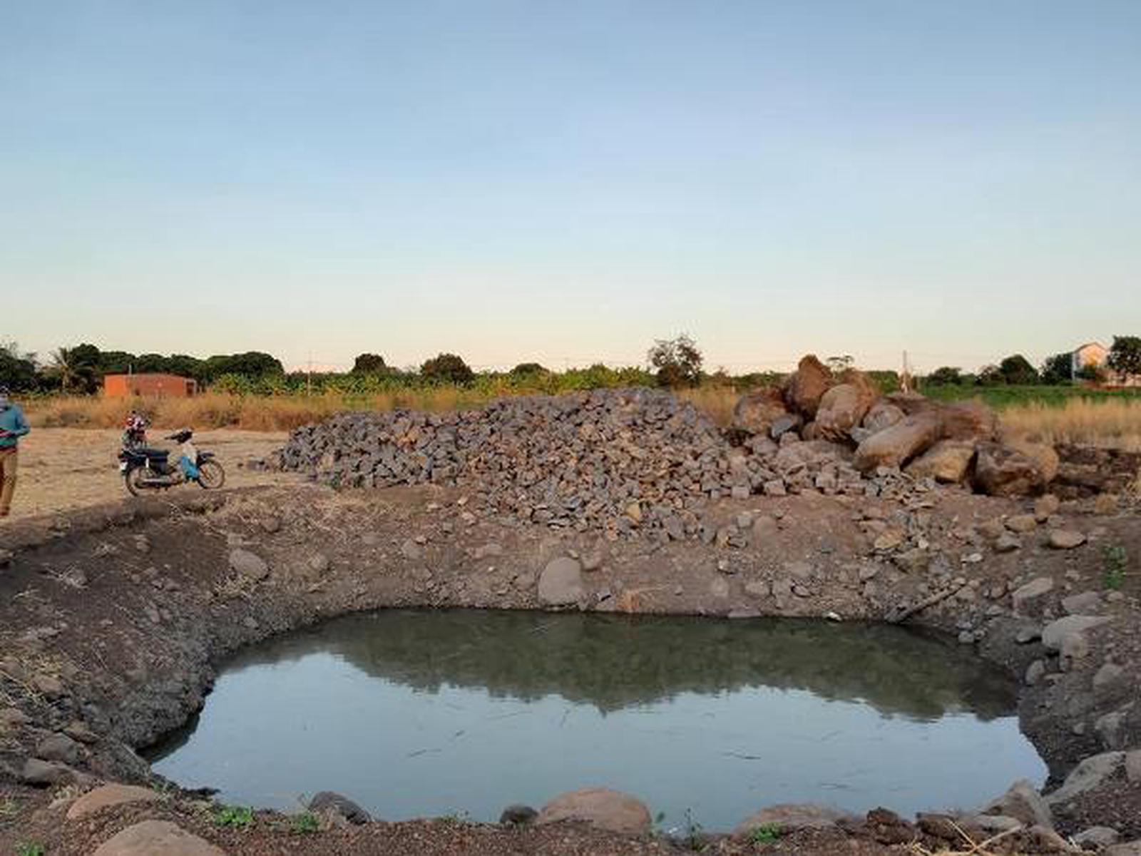 Nằm giữa hai điểm này là một mảnh ruộng bị đào sâu, đất đã được chở đi, chỉ còn lại các viên đá khối lởm chởm...