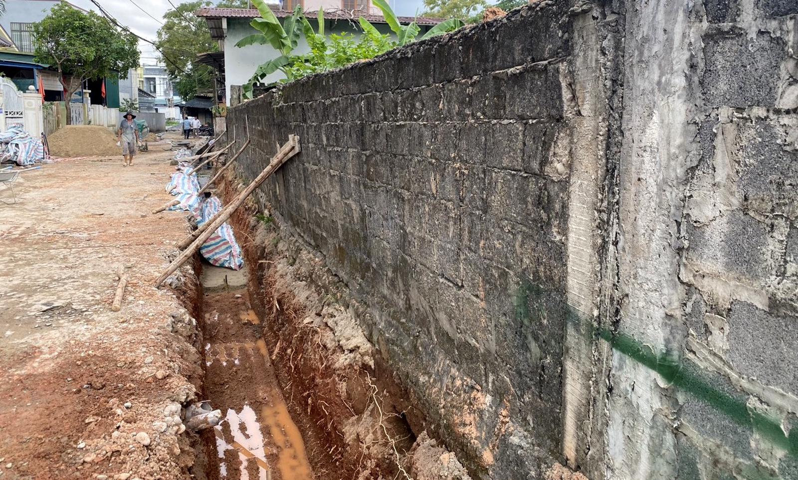 “Qua kiểm tra, đơn vị thi công thực hiện đào mương thoát nước với độ sâu khoảng 1m, sâu hơn cả hệ thống móng tường Trung tâm và lộ cả chân móng tường rào gây ảnh hưởng trực tiếp đến phần tường rào của đơn vị. Điều chúng tôi bức xúc là đơn vị thi công không có một sự phản hồi hay liên hệ với chúng tôi trước khi thi công công trình”, ông Hà cho biết.