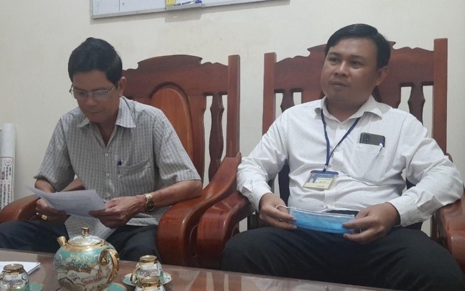 Ông Đoàn Thanh Dương, cán bộ địa chính xã (bên phải) và ông Huỳnh Tấn Hiệp, Phó Chủ tịch UBND xã Tân Thành (bên trái) trao đổi về vụ việc. Ảnh: Nguyên Dũng