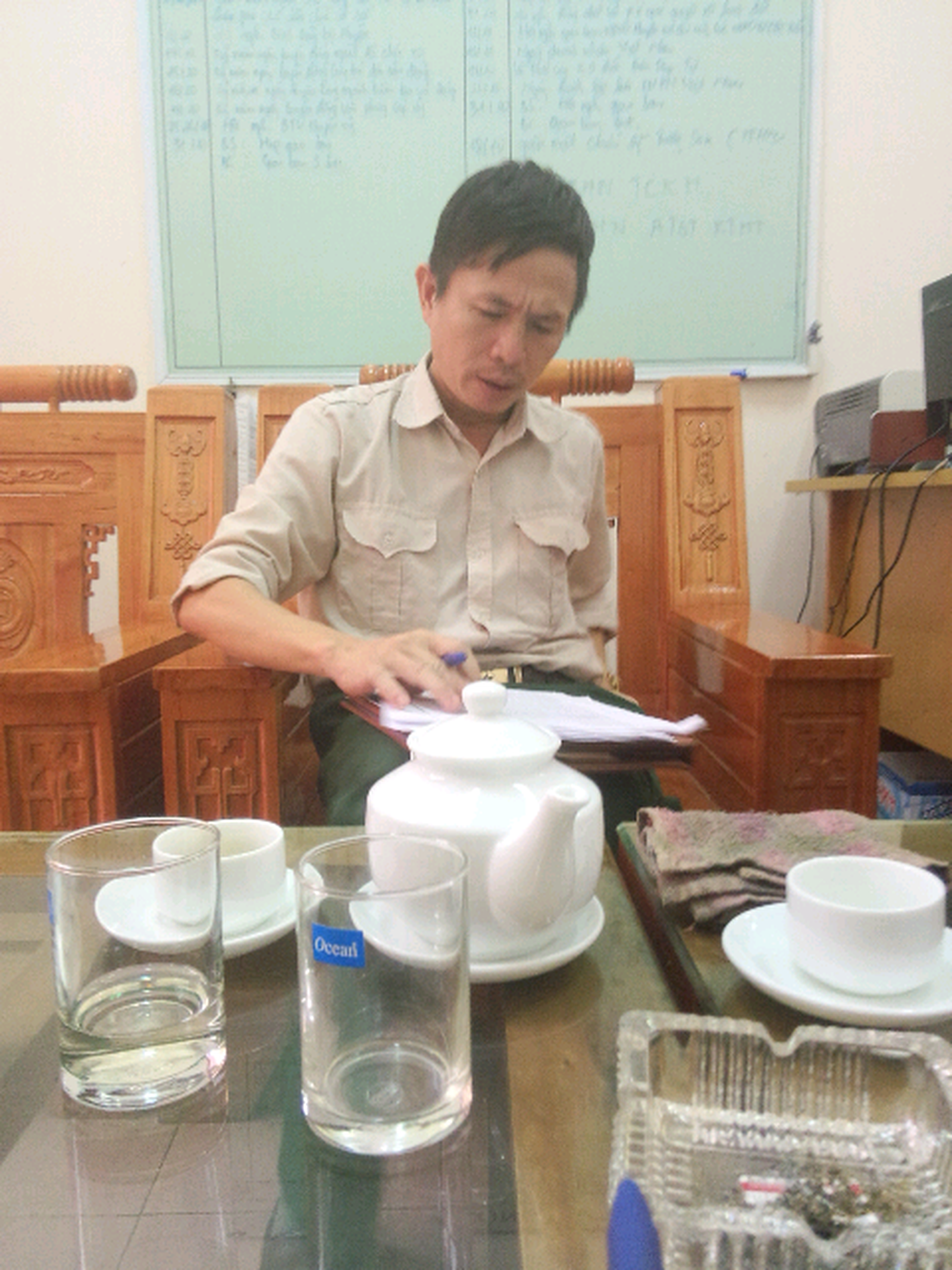 Để có thông tin 2 chiều, chúng tôi đã nhiều lần liên hệ đặt lịch làm việc với Chủ tịch UBND xã Hùng Sơn Cao Đình Tuân. Sau nhiều lần thất hẹn thì ông Tuận hẹn phóng viên vào làm việc. Tuy nhiên khi chúng tôi tới nơi thì phòng làm việc của ông Tuân cửa đóng then cài. Gọi điện cho ông Tuân thì ông cho biết đang đi họp không có thời gian tiếp nhà báo rồi tắt máy.