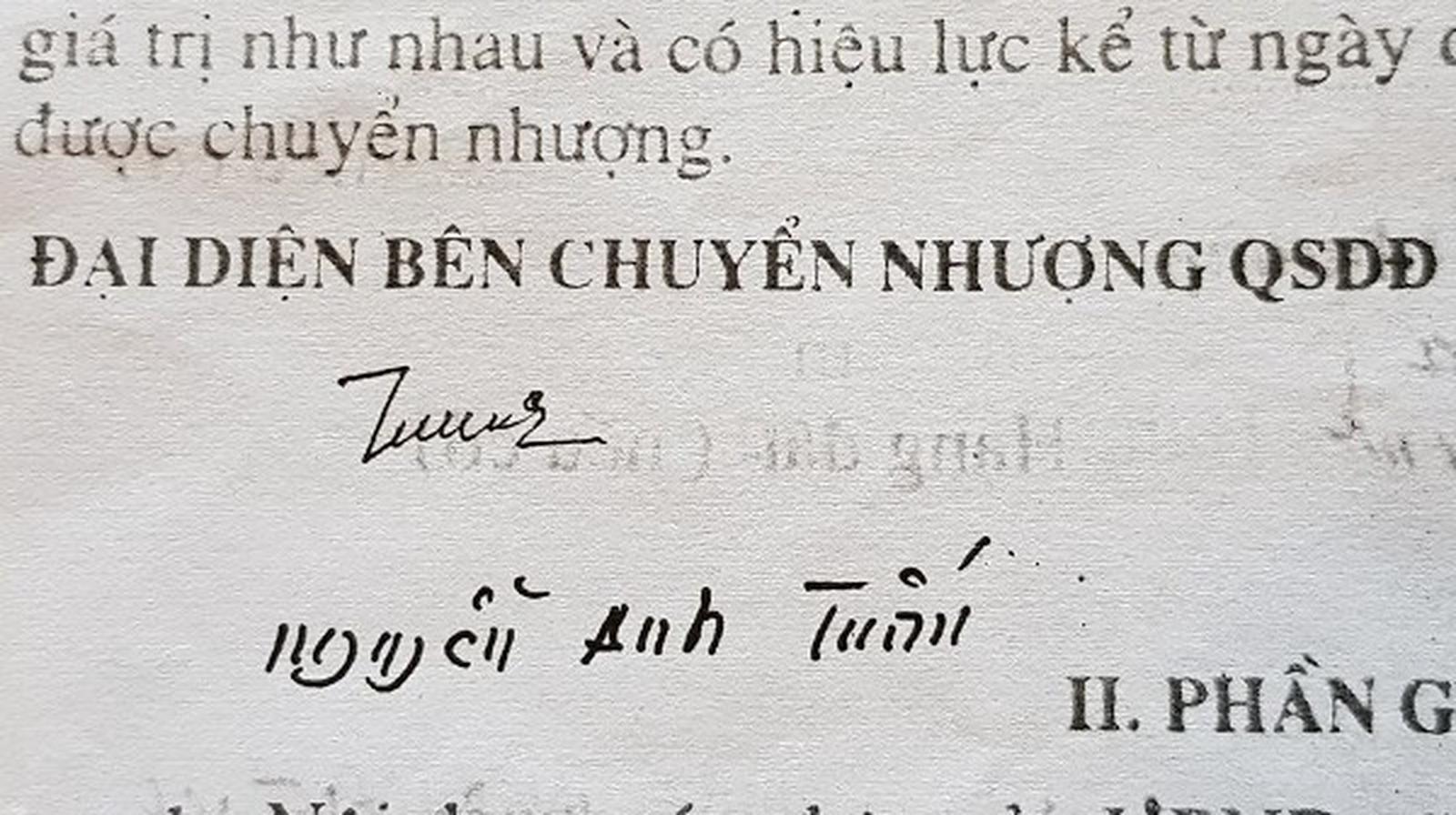Theo phản ánh của ông Tuấn, ông không hề biết và cũng không ký vào hợp đồng chuyển nhượng cho bà Sau. Chữ ký vào bản hợp đồng trên khi được xem lại tại cơ quan chuyên môn, ông Tuấn khẳng định hoàn toàn không phải của mình.