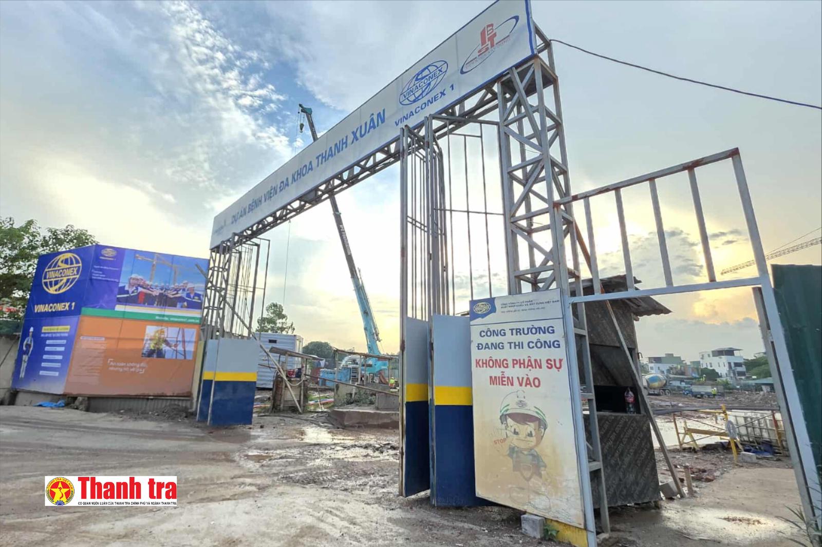 Cổng công trường dự án Bệnh viện Đa khoa Thanh Xuân (phường Khương Đình, Hà Nội). Ảnh: Đông Hà