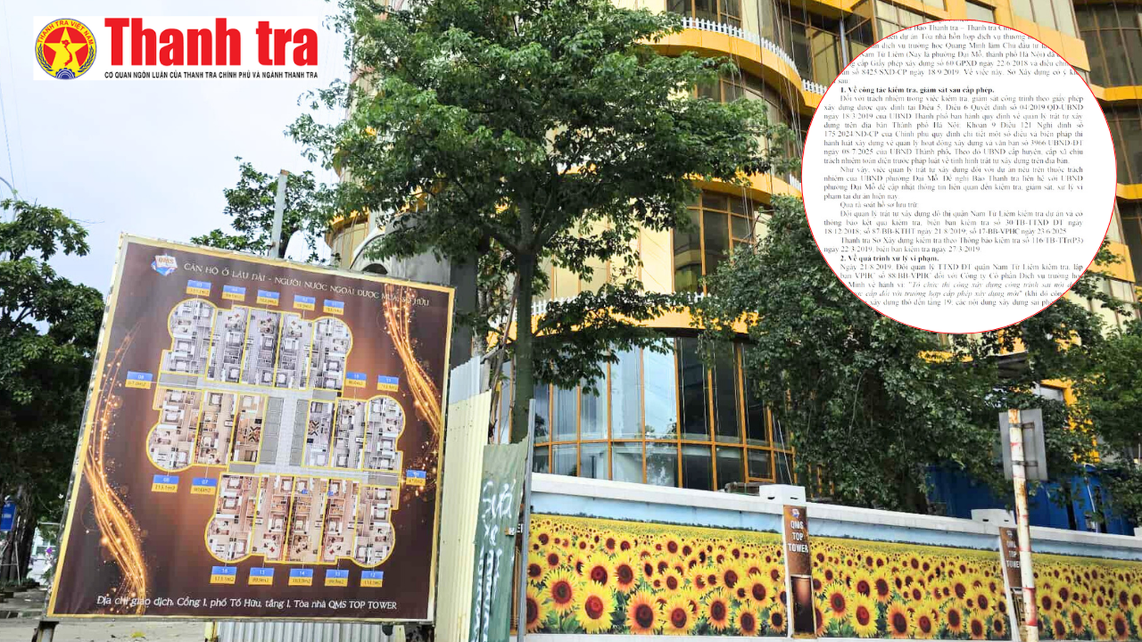 (Thanh tra) - Tòa nhà hỗn hợp dịch vụ thương mại và nhà ở trên đường Tố Hữu (nay thuộc phường Đại Mỗ, Hà Nội), Công ty Cổ phần Dịch vụ trường học Quang Minh làm chủ đầu tư, được cấp phép từ năm 2018. Trong 7 năm xây dựng, dự án 2 lần bị lập biên bản sai phạm và xử phạt hàng trăm triệu đồng, khiến dư luận đặt câu hỏi: Vì sao sai phạm kéo dài mà chưa được xử lý dứt điểm?