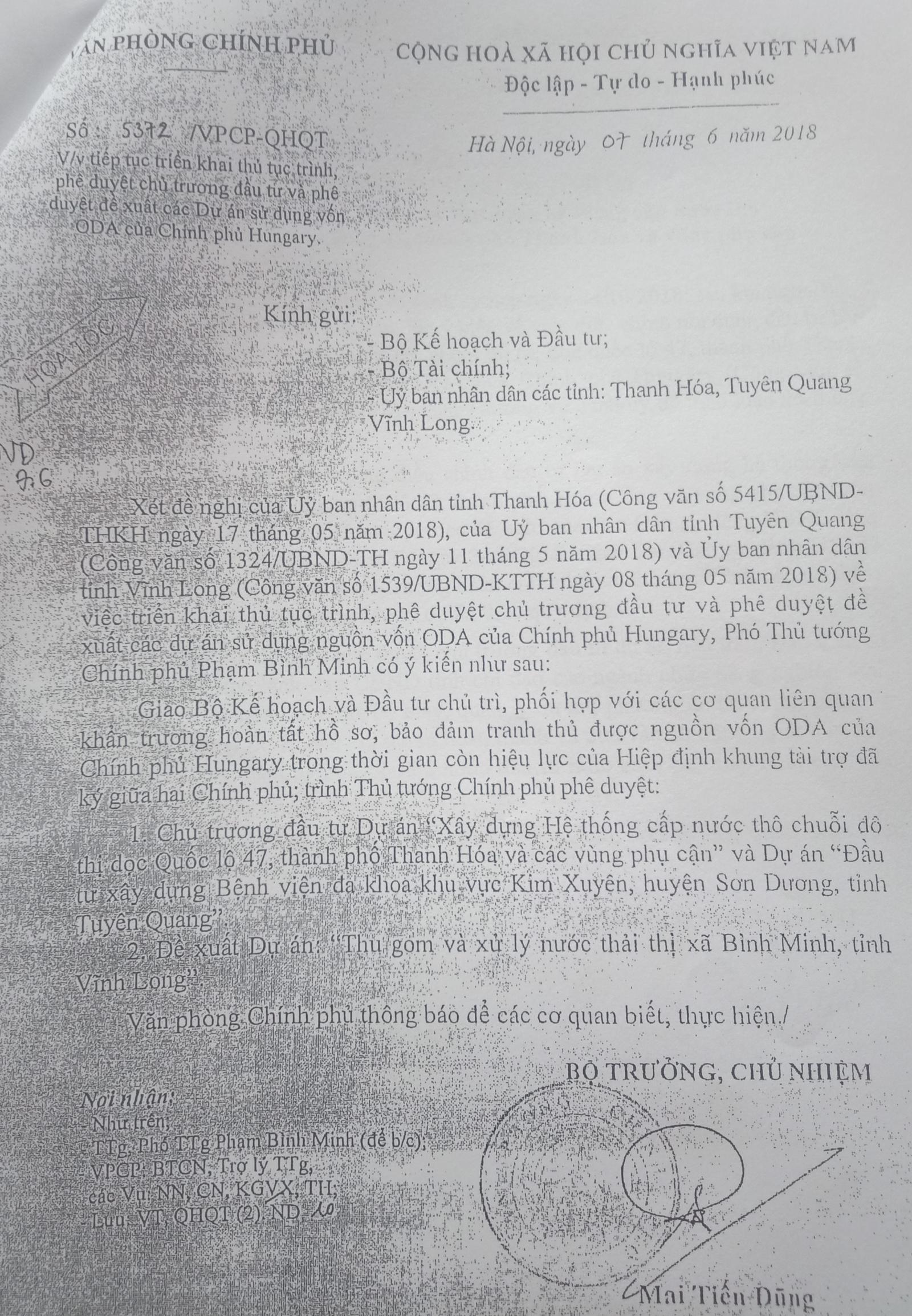 Dự án đang trên đà đi đúng hướng, bất ngờ Cty Thanh Bình có văn bản đề xuất thực hiện dự án tương tự, "phá ngang" dự án vay vốn của Chính phủ Hungary đang được triển khai.