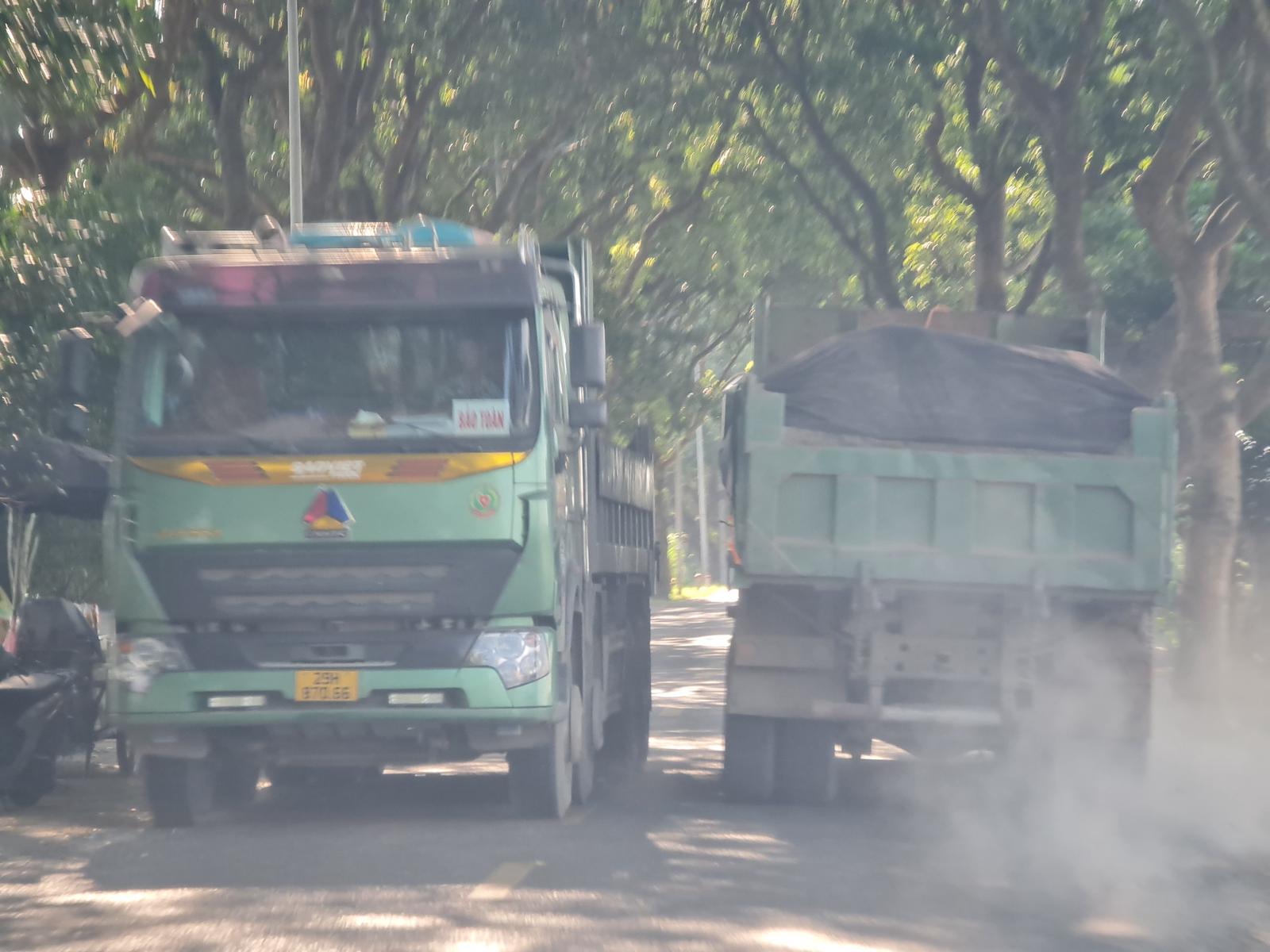 Quan sát cho thấy, những xe này đều chất tải cao hơn thành thùng khoảng 20 - 60cm; dù được che bạt nhưng đất vụn vẫn rơi vãi, cuốn lên thành bụi phía sau, hoặc quấn lấy bánh xe rồi văng tung ra bốn phương tám hướng khiến người tham gia giao thông bên cạnh vô cùng bất an.