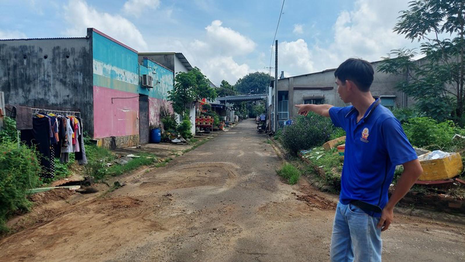 Anh Vũ Văn Trường (tổ 10, khu phố Lập Thành) bức xúc cho biết, vào mùa mưa, nước dâng cao, chảy tràn vào tận sân nhà anh.