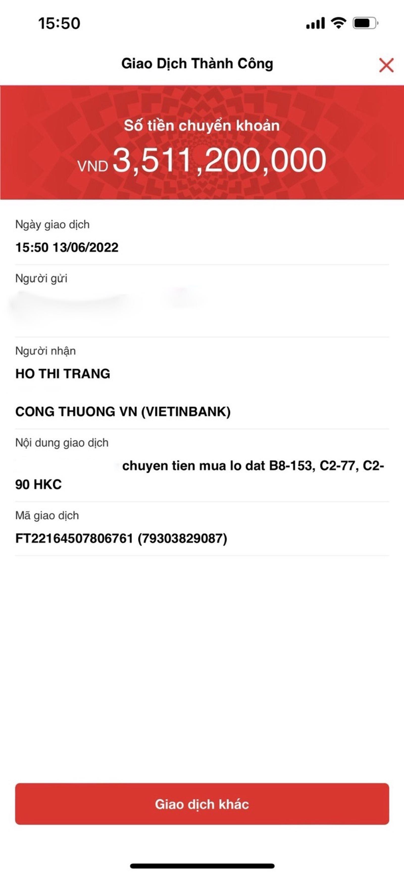Tương tự, ông P.Đ.T góp vốn vào 3 lô đất ký hiệu B8-153, C2-77, C2-90 theo các Hợp đồng góp vốn số: BL8-153-L1, C2-77-L1, C2-90-L1/HĐGV/CAOXANH-HAKHANHC cùng ký ngày 13/06/2022 giữa ông P.Đ.T và Công ty Biền Đông số tiền hơn 7 tỷ đồng (bằng 95% giá trị 3 lô đất).