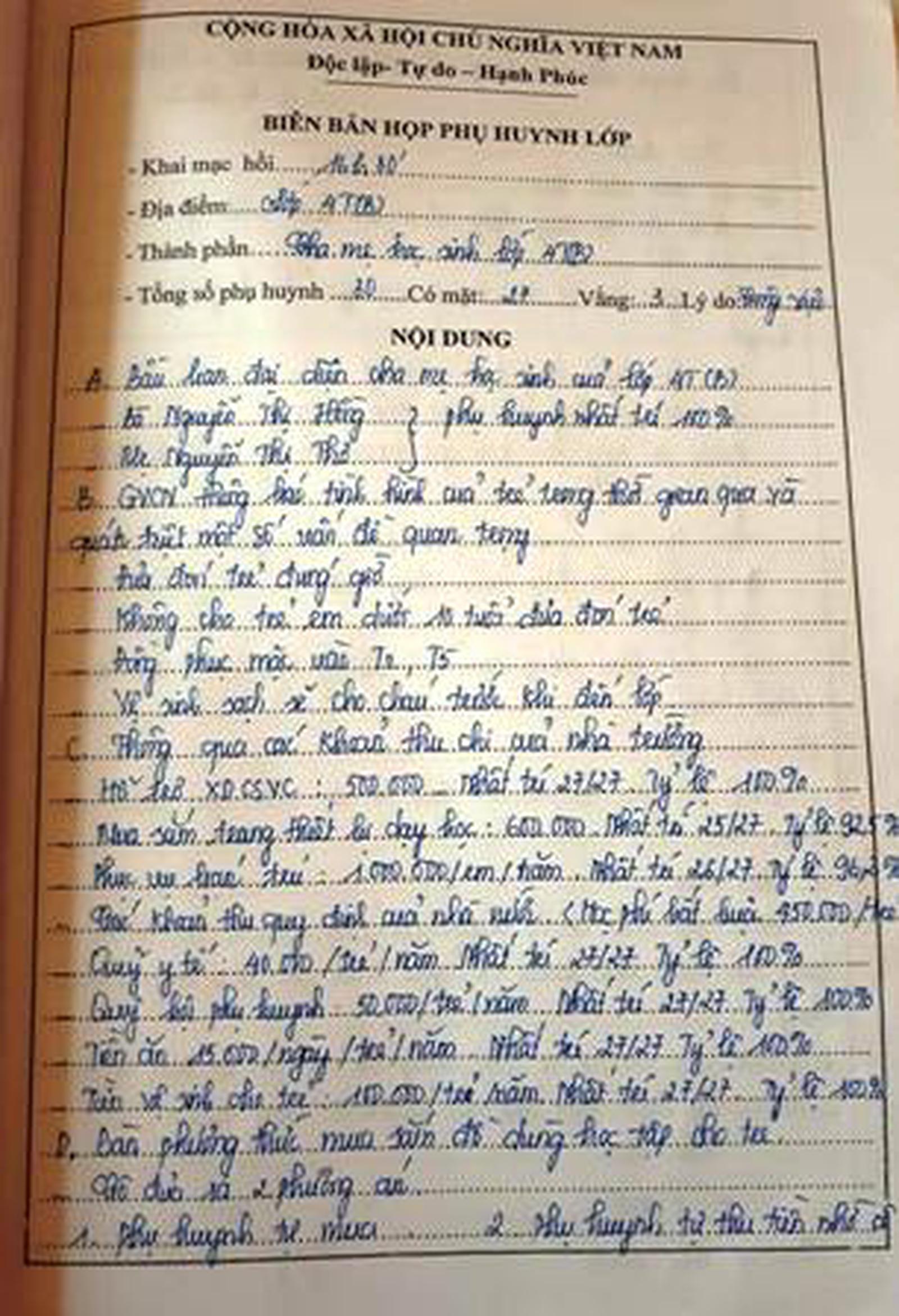 Chưa được chính quyền chấp thuận nhưng trường đã tự ý họp phụ huynh để thu các khoản trái quy định. Ảnh: Hải Yến