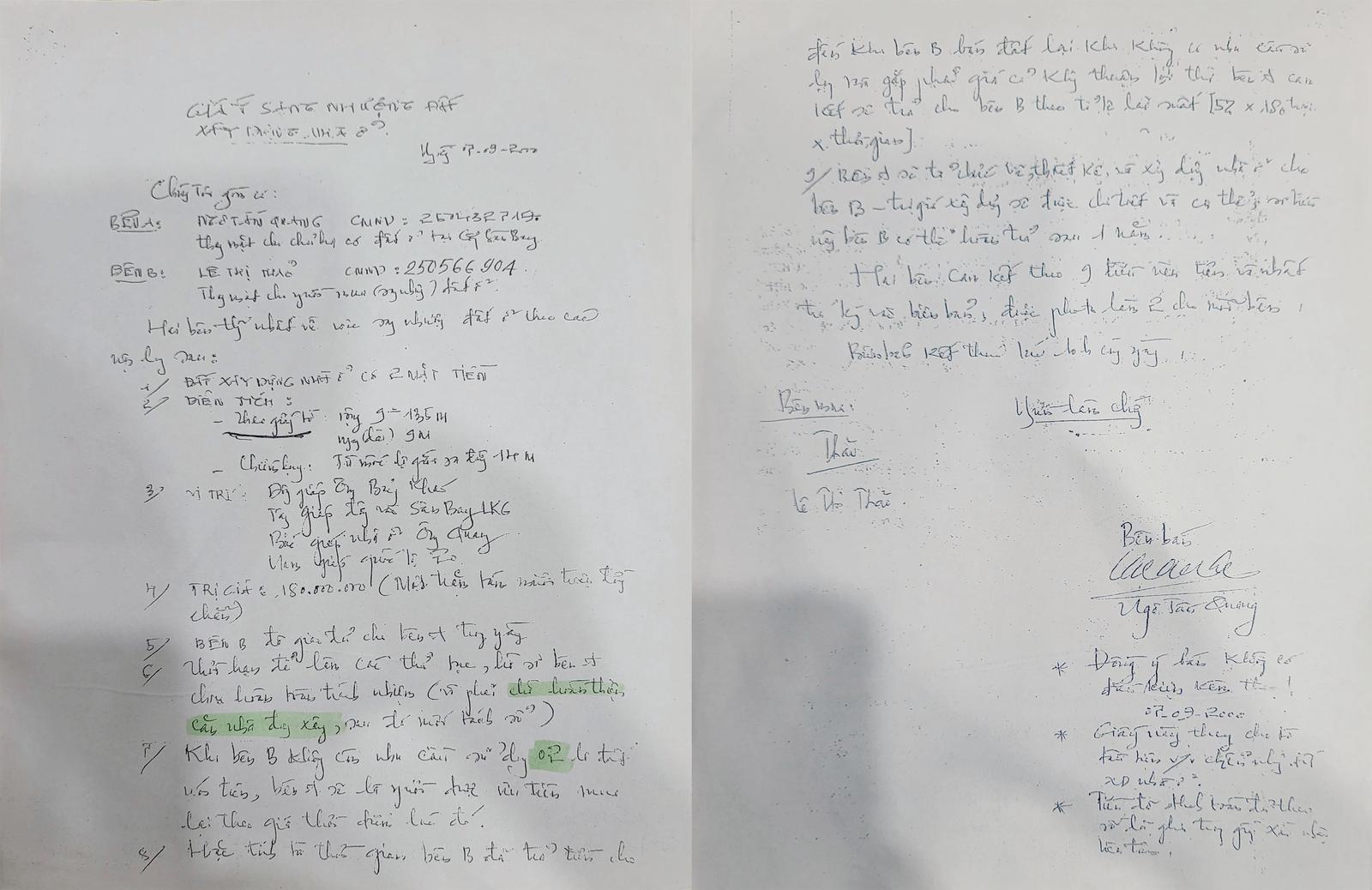 Ông Quang cho biết thêm, tại các văn bản như giấy sang nhượng đất xây dựng nhà ở; biên bản ghi lời khai; đơn yêu cầu đo vẽ thẩm định giá và xem xét thẩm định tại chỗ tài sản đang tranh chấp, bà Th. đều công nhận mua 2 lô đất có hình cánh quạt, 2 mặt tiền phía ngoài thuộc một phần thửa 19 và 20.