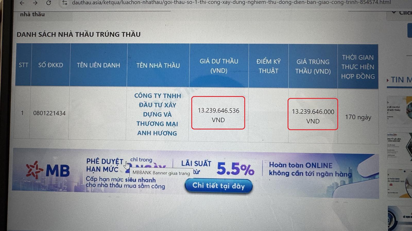 Thậm chí, tại dự án có giá hơn 13,239 tỷ đồng nhưng giá dự thầu chỉ cao hơn giá trúng thầu có 536 đồng, không khỏi khiến dư luận hoài nghi về dấu hiệu "thông thầu". Ảnh: Nam Dũng