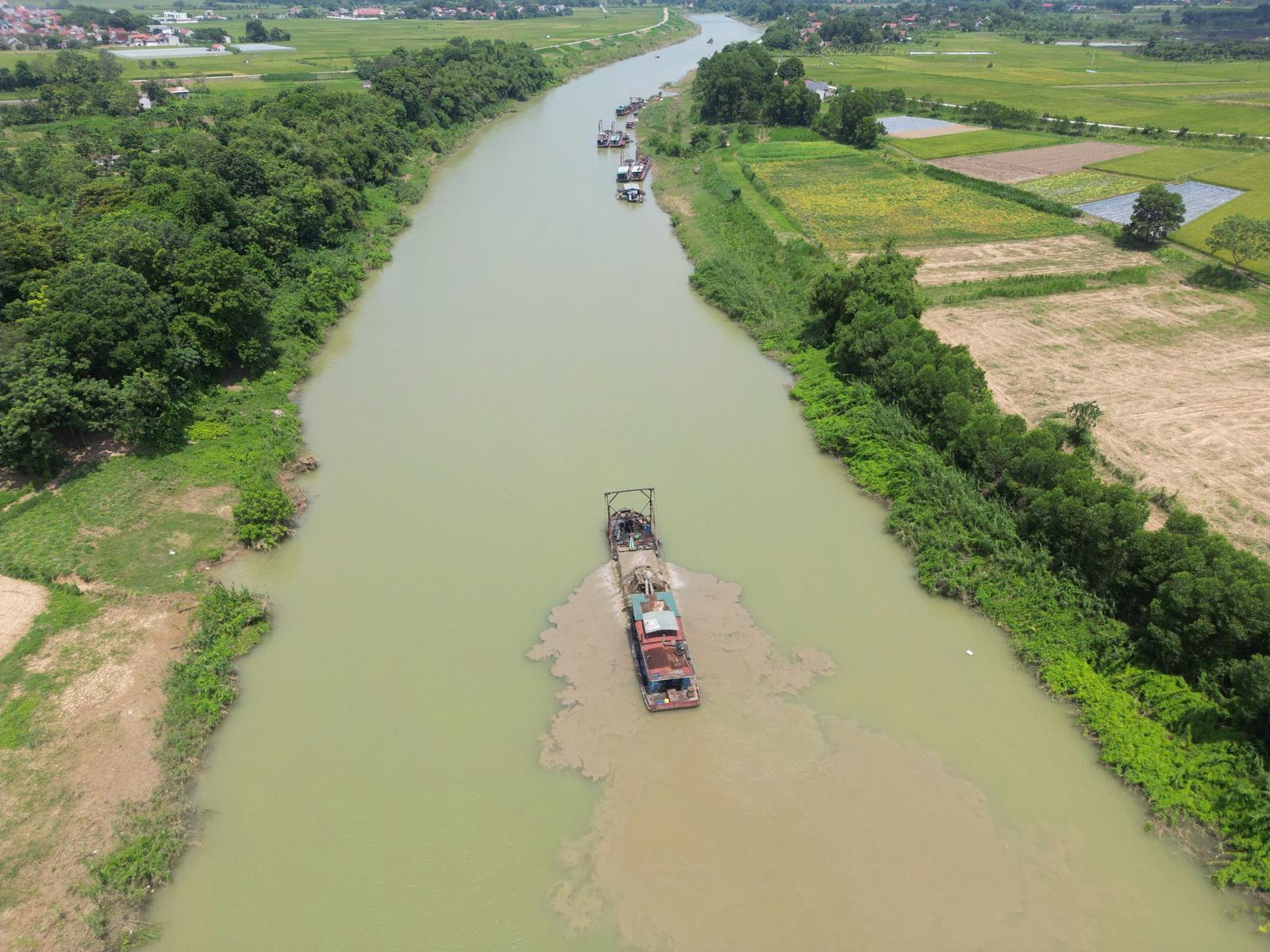 Hoạt động khai thác cát diễn ra tại sông Bưởi (khu vực gần ngã ba sông). Ảnh: Hương Trà