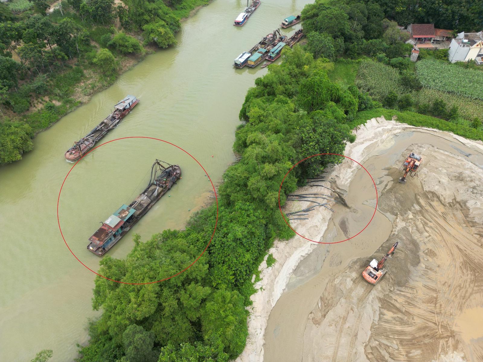 Chị Tống Thị Thuỷ - người dân ở thôn Khang Hồ, xã Ninh Khang cho biết: “Đây là vị trí sông Bưởi, thuộc huyện Vĩnh Lộc, tại vị trí giữa lòng sông gần ngã ba sông của sông Bưởi và sông Mã, có 2 thuyền thường xuyên hút cát. Các thuyền hút cát đã hút sạt lở vào đất bãi sản xuất nông nghiệp của các hộ dân nơi đây. Người dân ở đây đã từng nhiều lần quay video của các thuyền hút cát và đưa lên mạng xã hội…”.