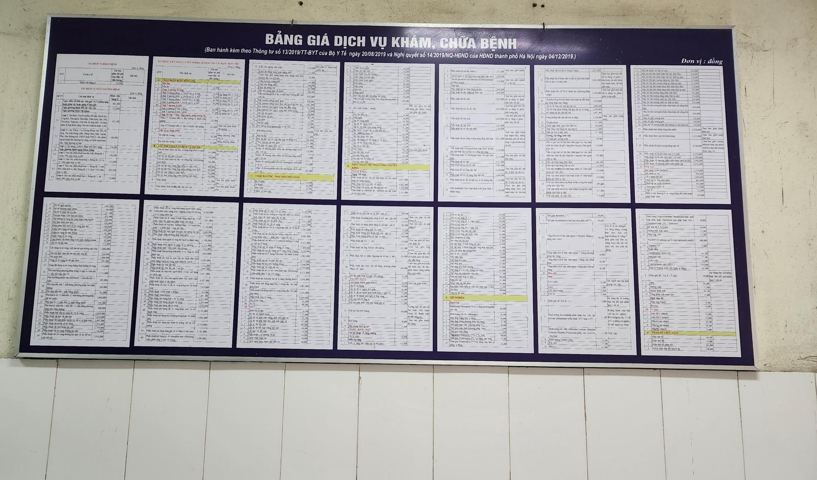 Bảng giá dịch vụ khám, chữa bệnh được công khai tại BVĐK Vân Đình. Ảnh: HH