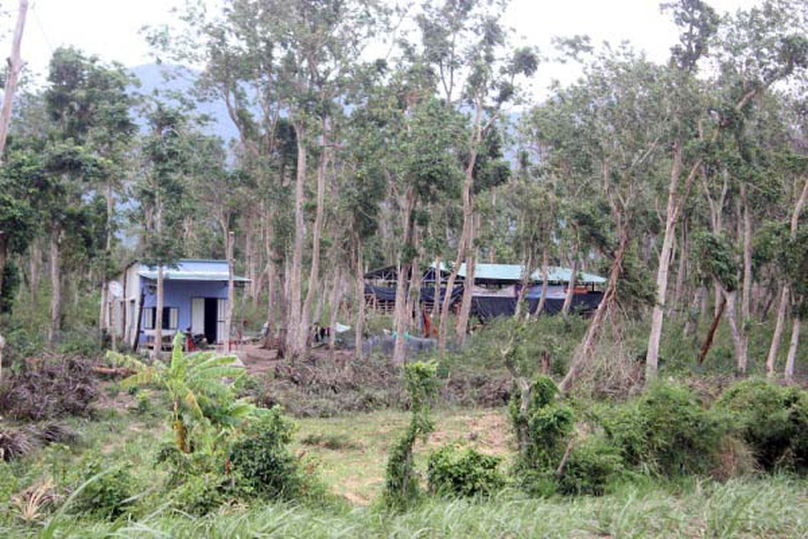 Ngôi nhà và trang trại dê được xây dựng trong rừng phòng hộ Căm Xe. Ảnh: XH