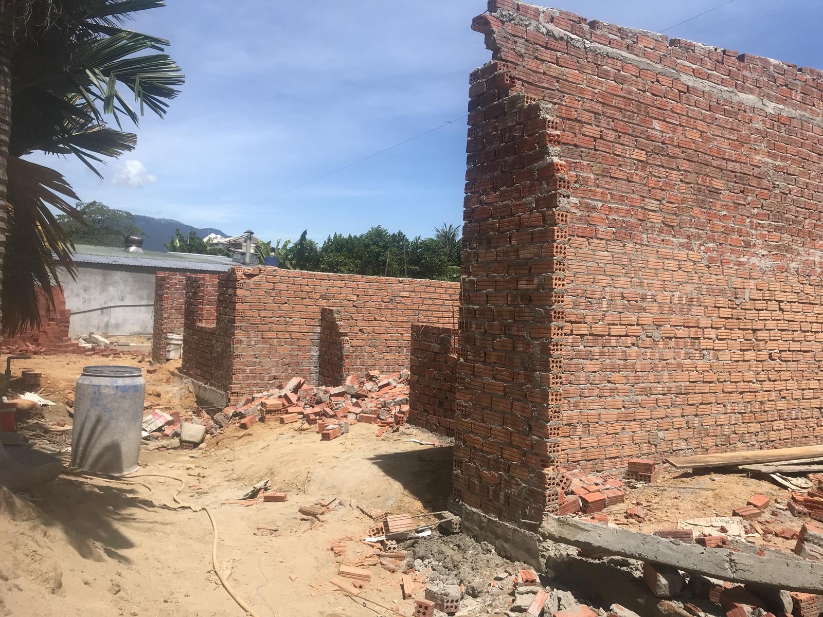Tiếp đến, ngày 4/6, ông Trần Văn Thu, Chủ tịch UBND xã Hòa Nhơn dẫn đầu đoàn cán bộ xã, lực lượng bảo vệ đến đập phá nhiều bức tường của các căn nhà đang xây dở.