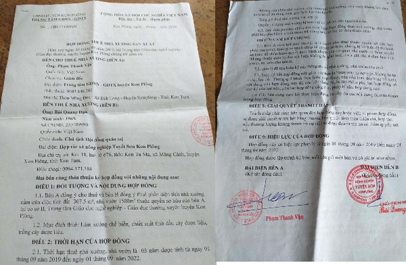 Mặc dù, không có học viên theo học tại Trung tâm, nhưng Giám đốc Trung tâm cũng như lãnh đạo huyện Kon Plong vẫn xin kinh phí sửa chữa, nâng cấp phòng học với tổng số tiền là 350 triệu đồng. Chưa hết, vào ngày 30/8/2019, ông Phạm Thanh Vận, Giám đốc Trung tâm đã tự ký hợp đồng cho Hợp tác xã (HTX) nông nghiệp Tuyết Sơn đóng trên địa bàn huyện Kon Plong thuê lại với giá 40 triệu đồng/năm, thời hạn là 3 năm.