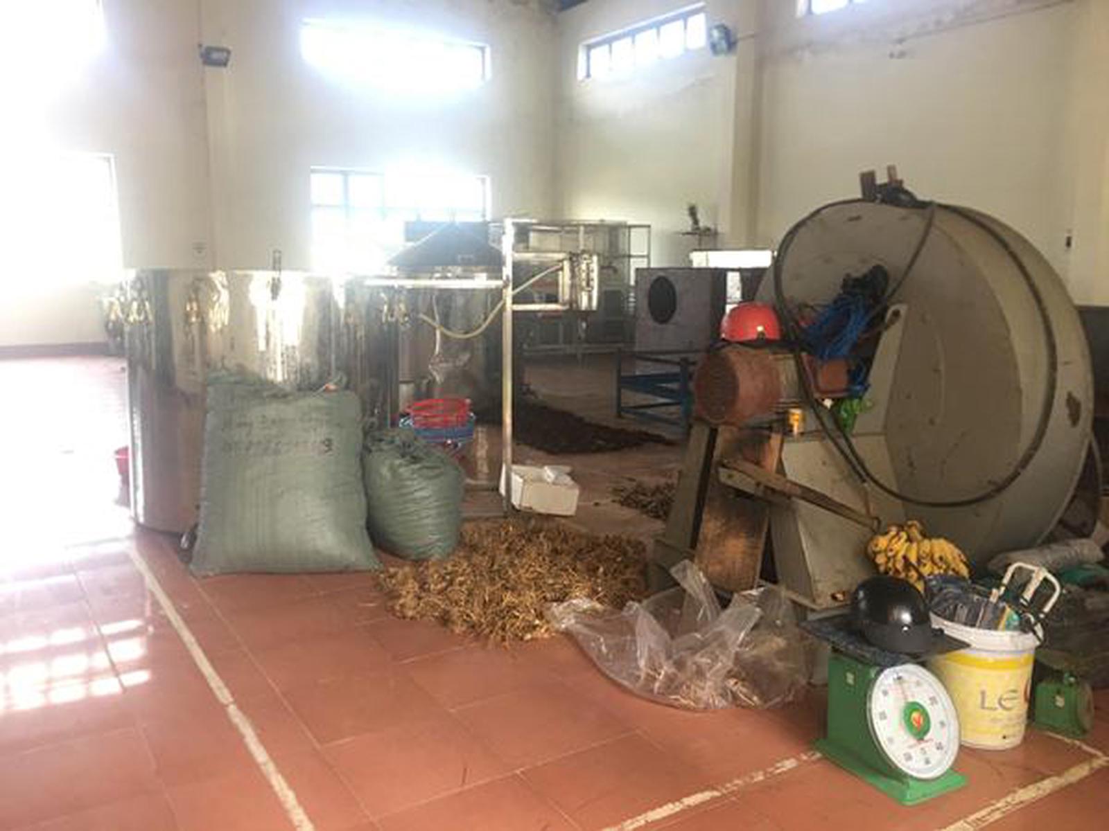Tuy nhiên trên thực tế, ngày 14/10, chúng tôi có mặt tại Trung tâm GDNN–GDTX huyện Kon Plong thì HTX nông nghiệp Tuyết Sơn vẫn đang hoạt động. Cụ thể, tại một căn phòng lớn của Trung tâm có công nhân đang “vận hành” máy móc để chế biến tinh dầu, ngay dưới nền nhà là bao bì, bụi bặm và các loại rễ cây được vứt bừa bãi… theo quy trình chế biến tinh dầu “sạch” của doanh nghiệp này.